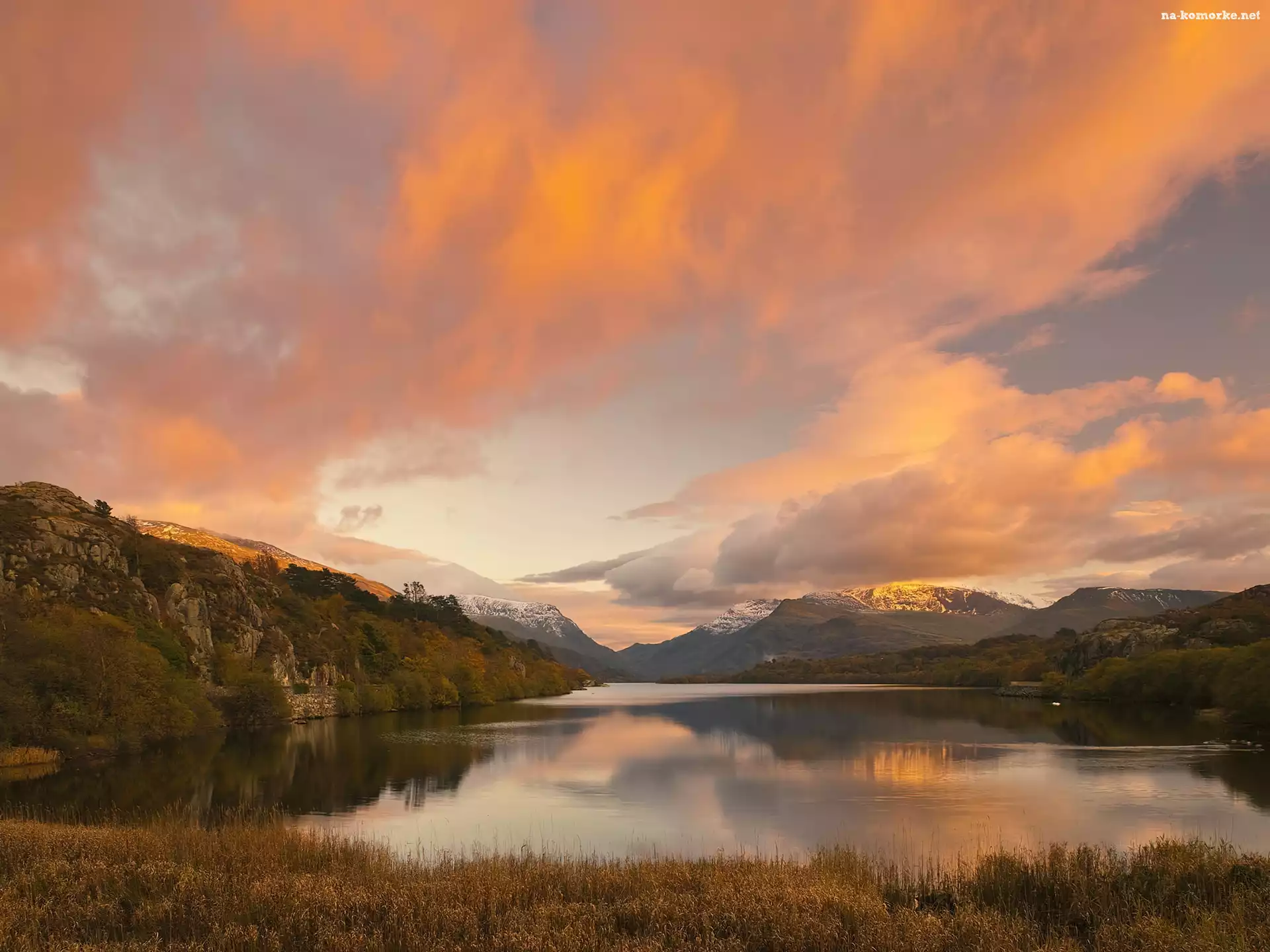 Zachód, Jeziorem, Słońca, Nad na Komórkę