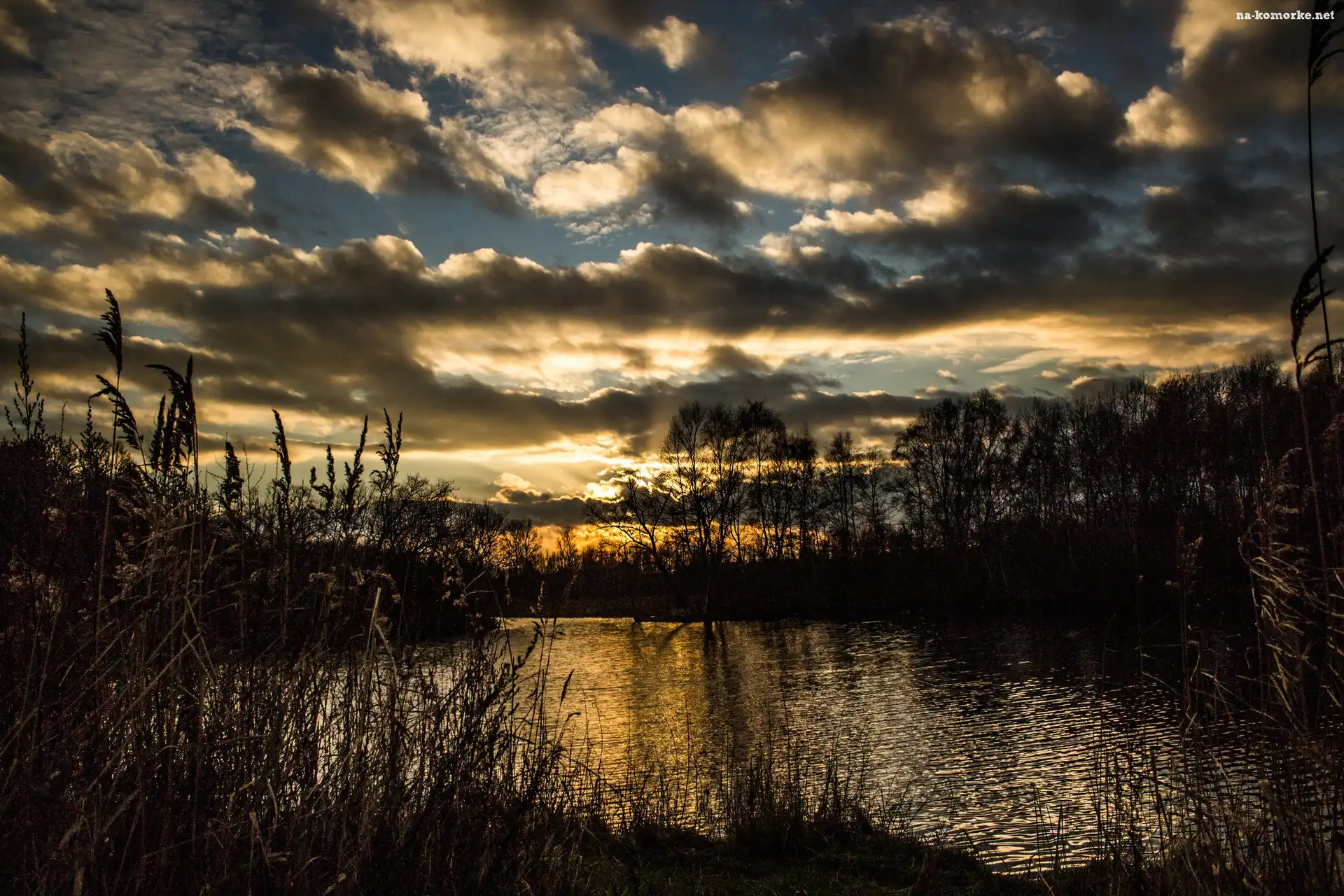 Zachód, Jezioro, Słońca, Las na Komórkę