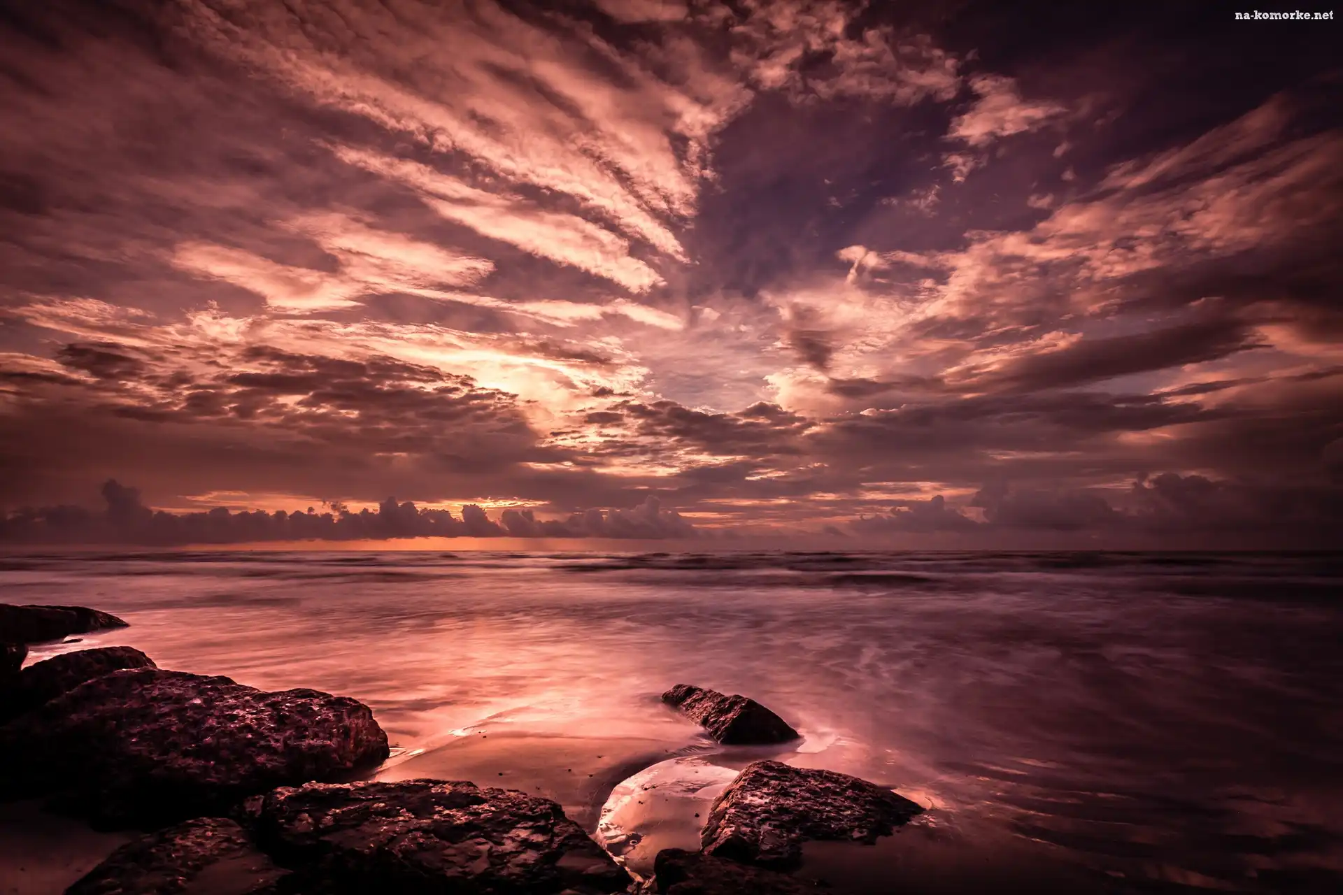 Zachód, Kamienie, Słońca, Morze na Komórkę