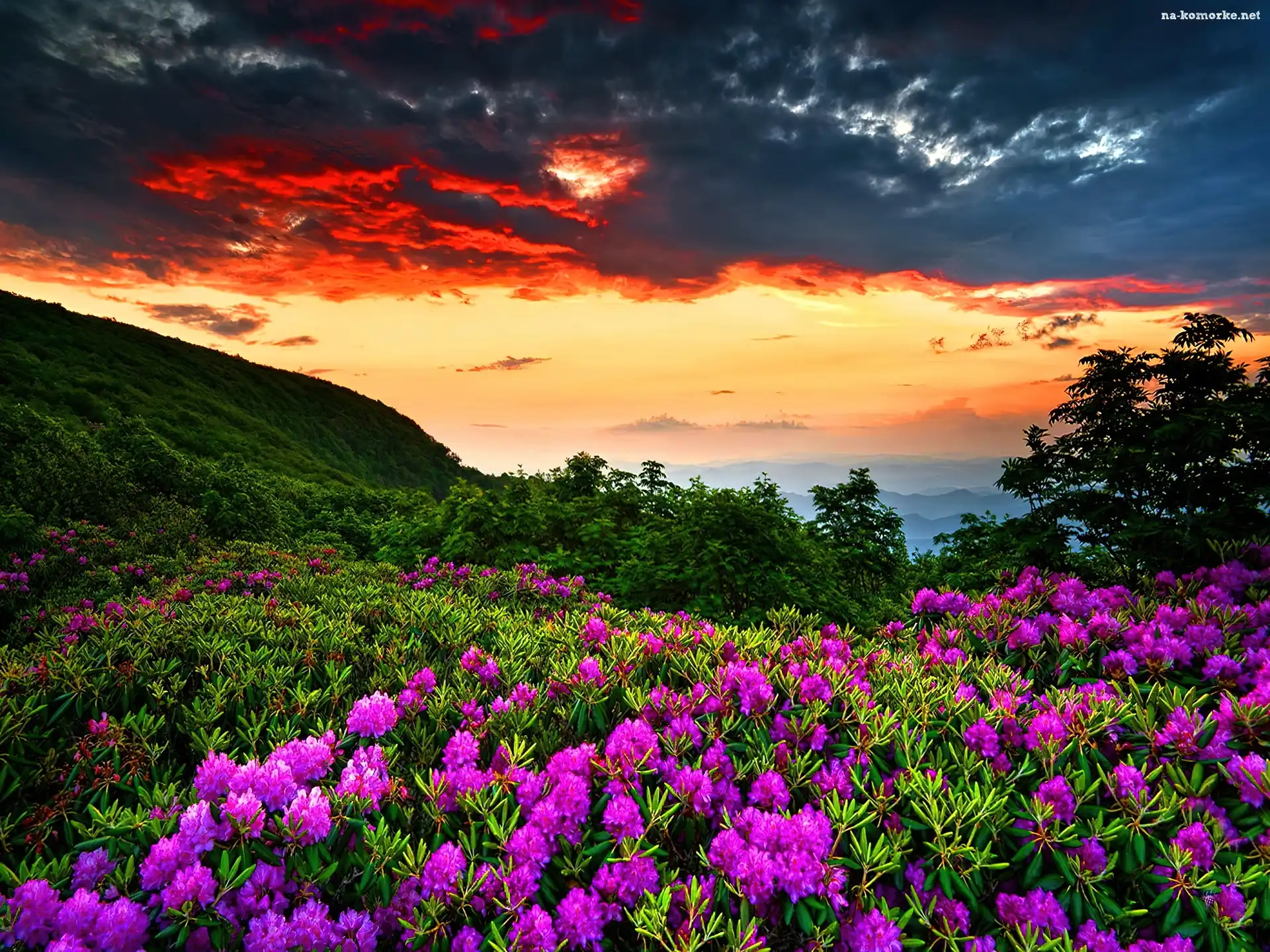 Zachód, Kwiatki, Słońca, Góry na Komórkę