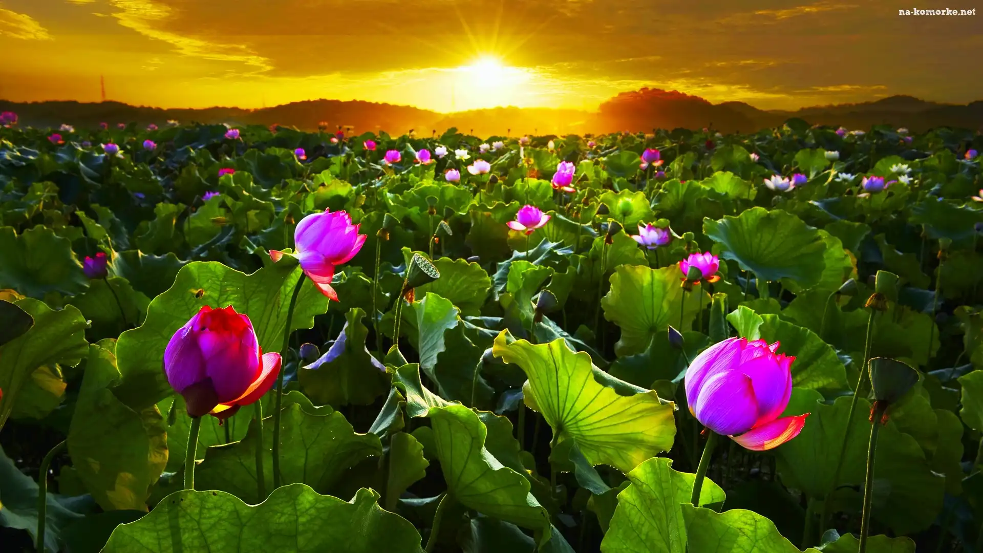 Zachód, Kwiatów, Słońca, Pole na Komórkę