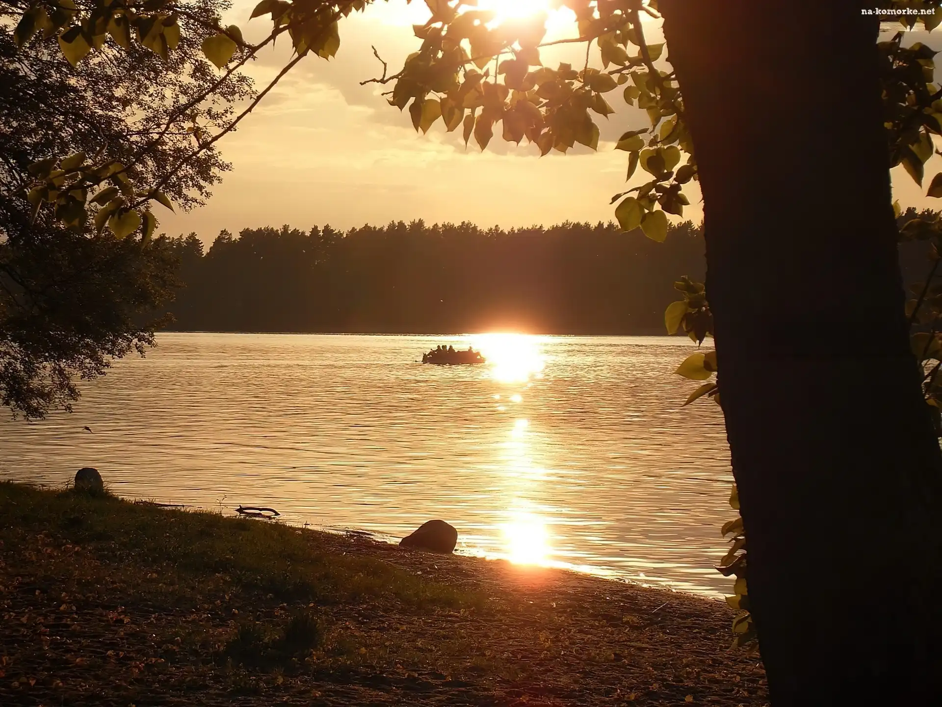 Zachód, Lasy, Słońca, Jezioro na Komórkę