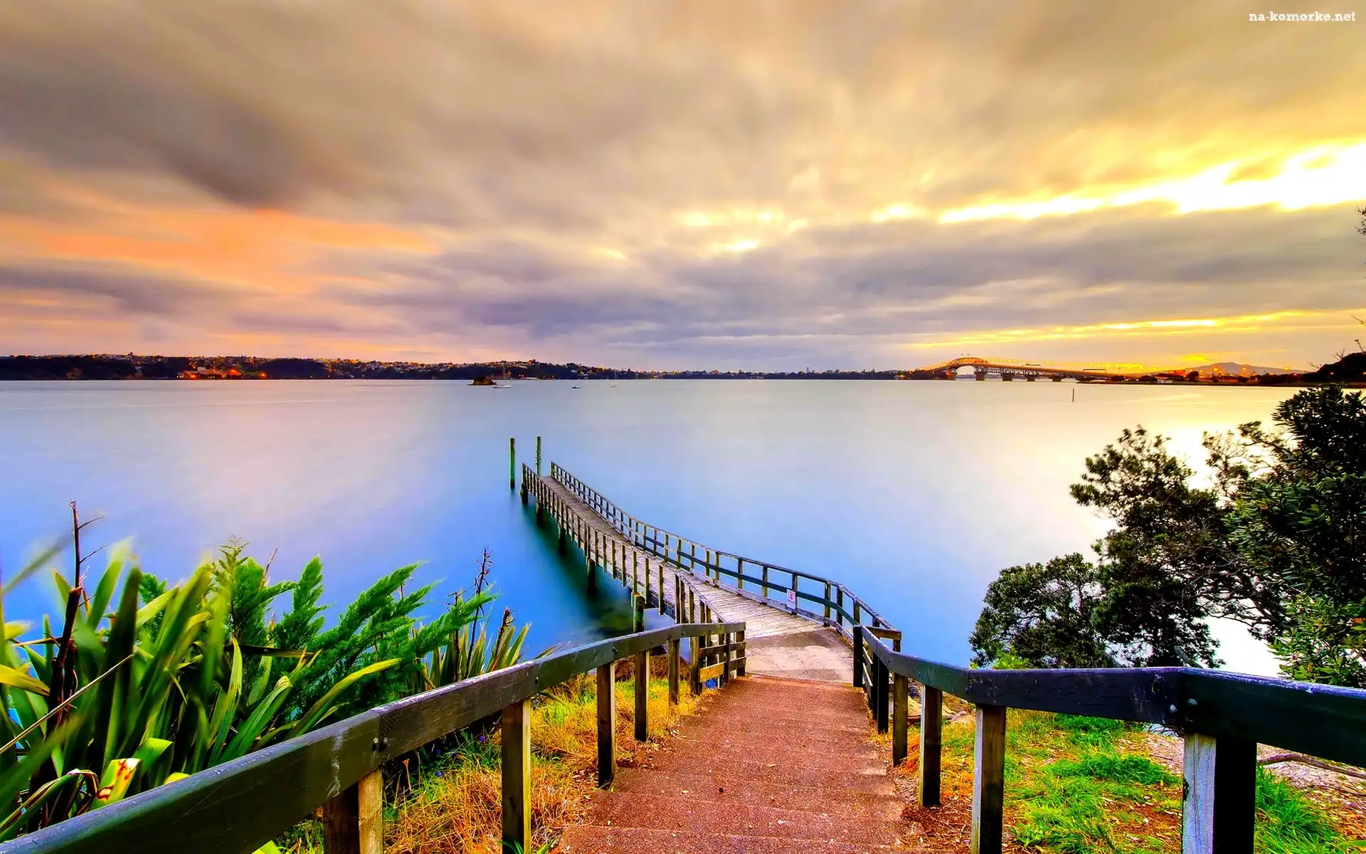 Zachód, Molo, Słońca, Jezioro na Komórkę