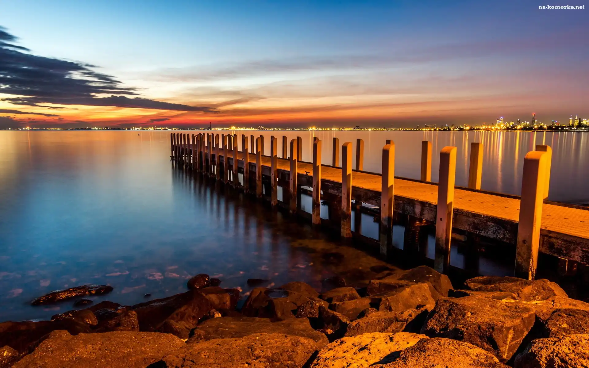 Zachód, Molo, Słońca, Morze na Komórkę