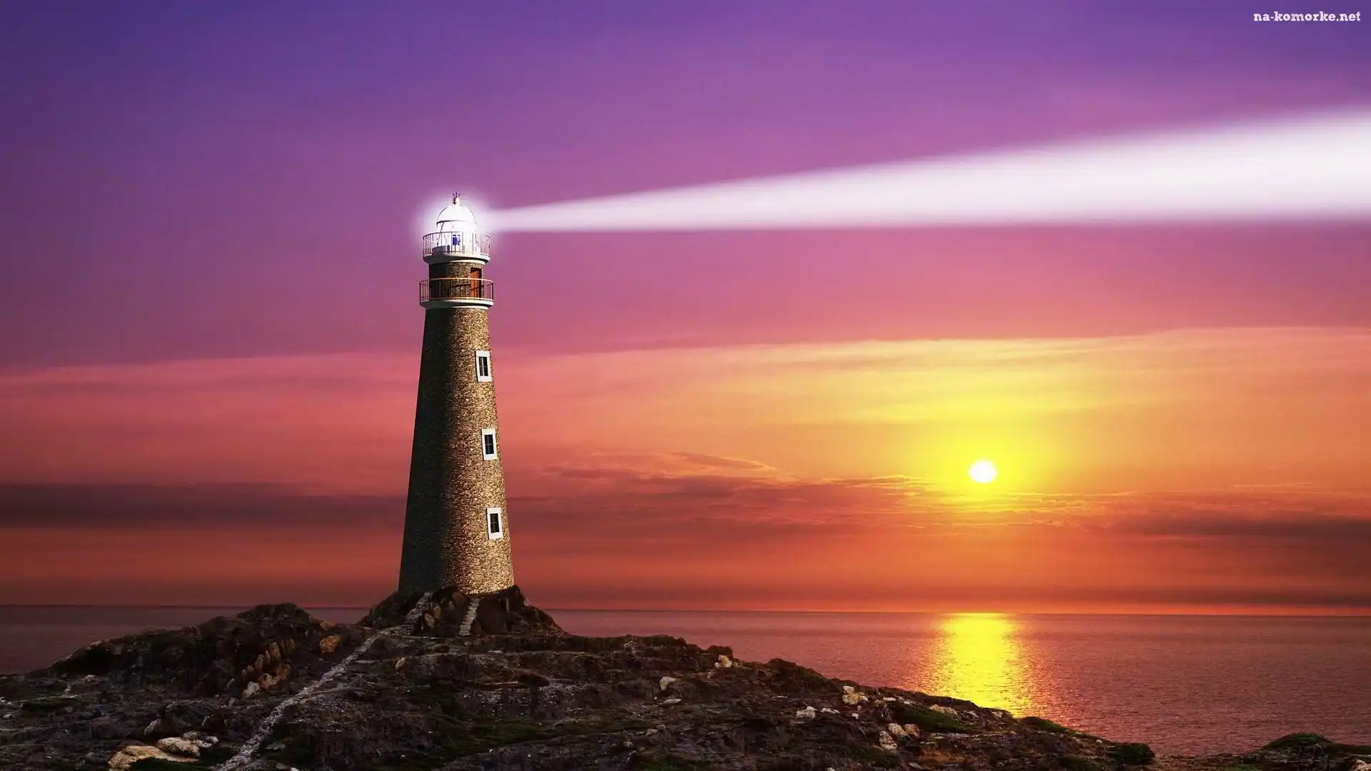 Zachód, Morska, Słońca, Latarnia na Komórkę