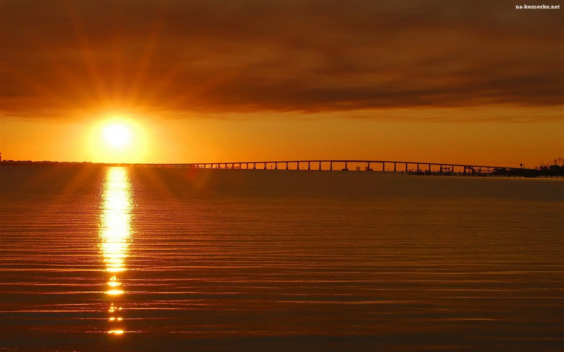 Zachód, Most, Słońca, Rzeka na Komórkę