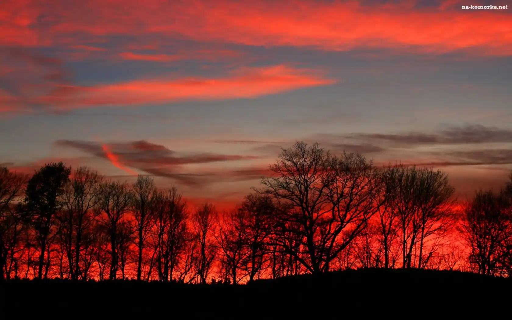 Zachód, Niebo, Słońca, Drzewa na Komórkę
