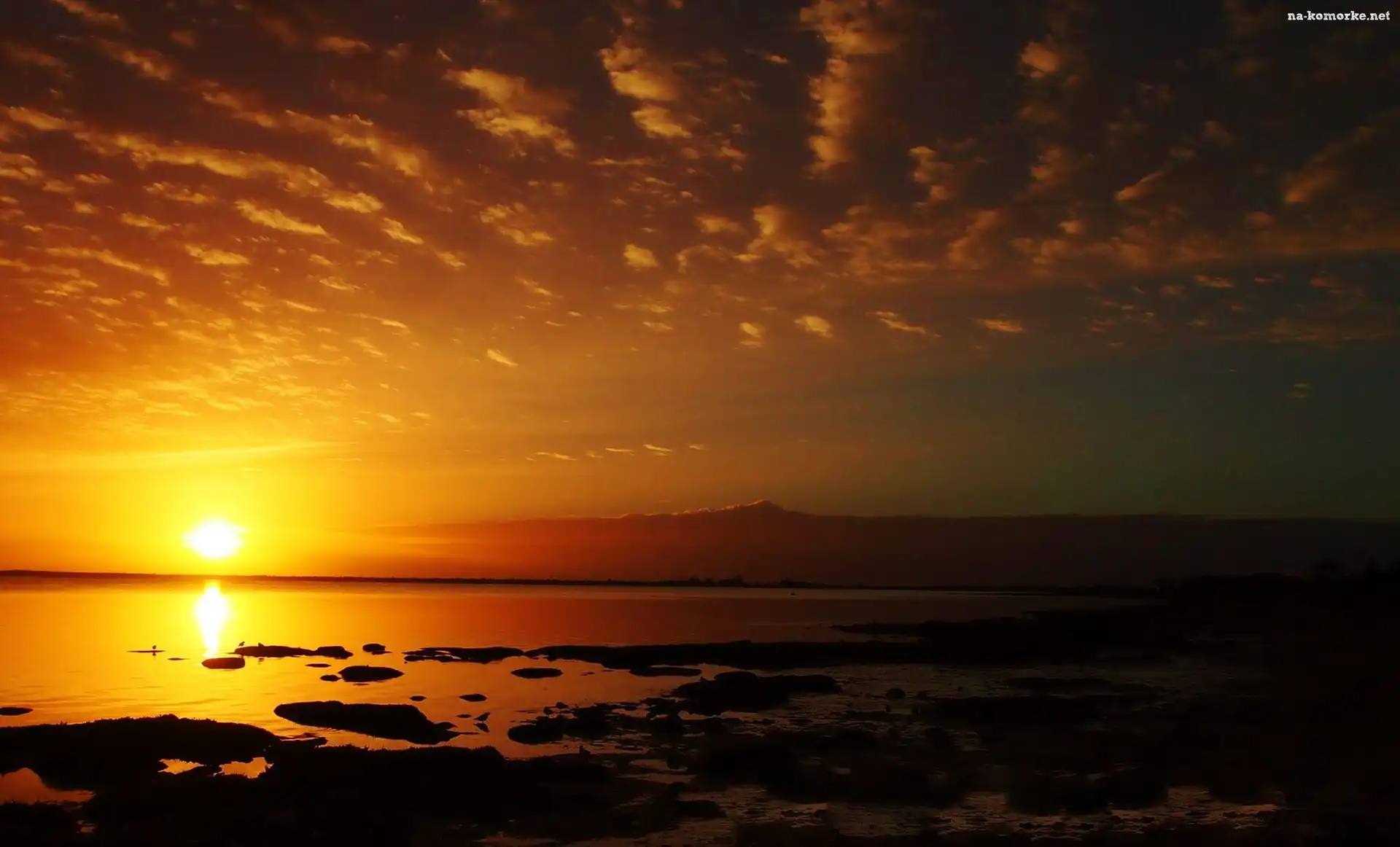 Zachód, Niebo, Słońca, Morze na Komórkę