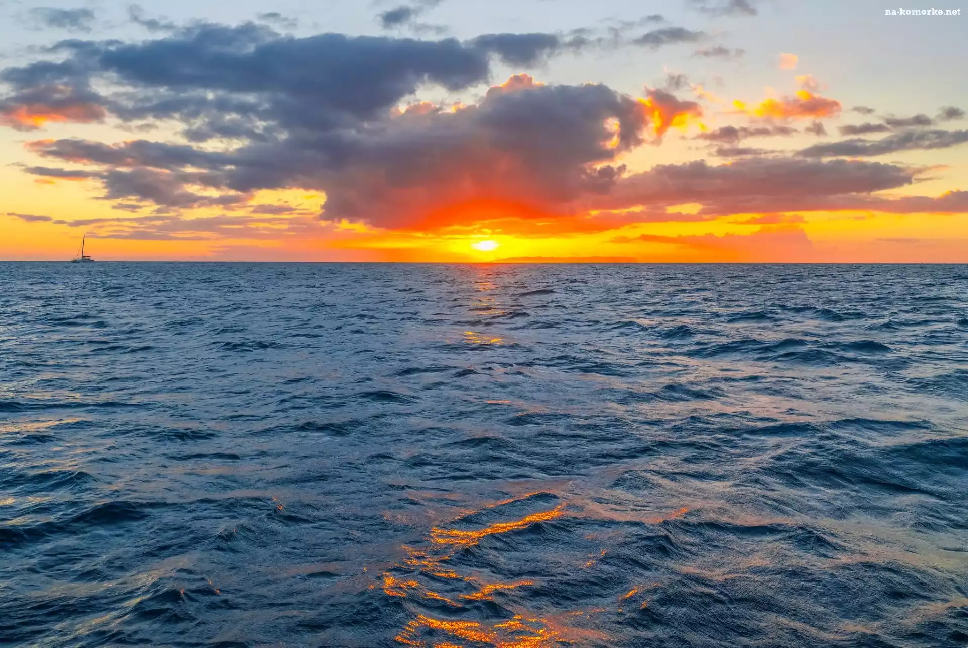 Chmury, Zachód słońca, Morze, Niebo na Komórkę
