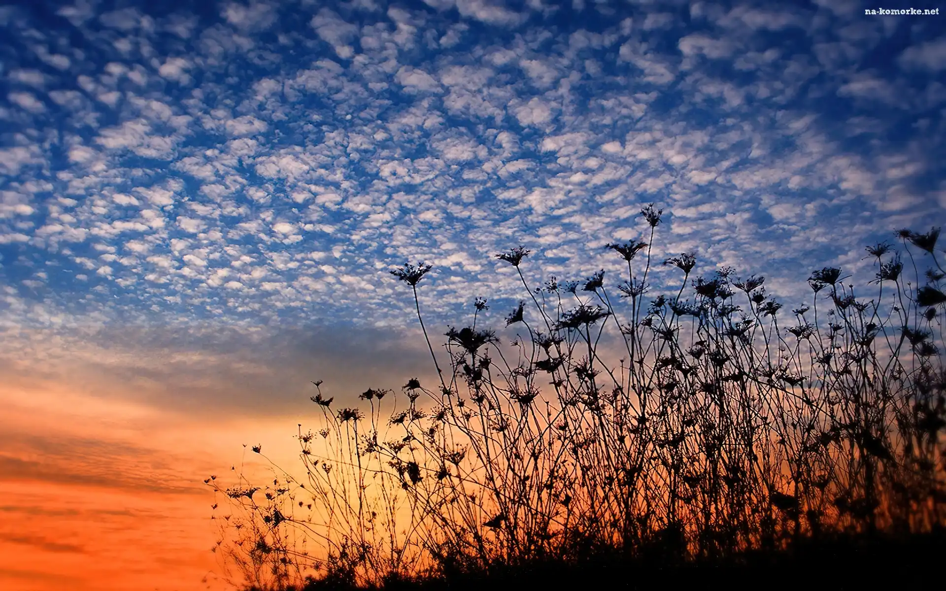 Zachód, Niebo, Słońca, Rośliny na Komórkę