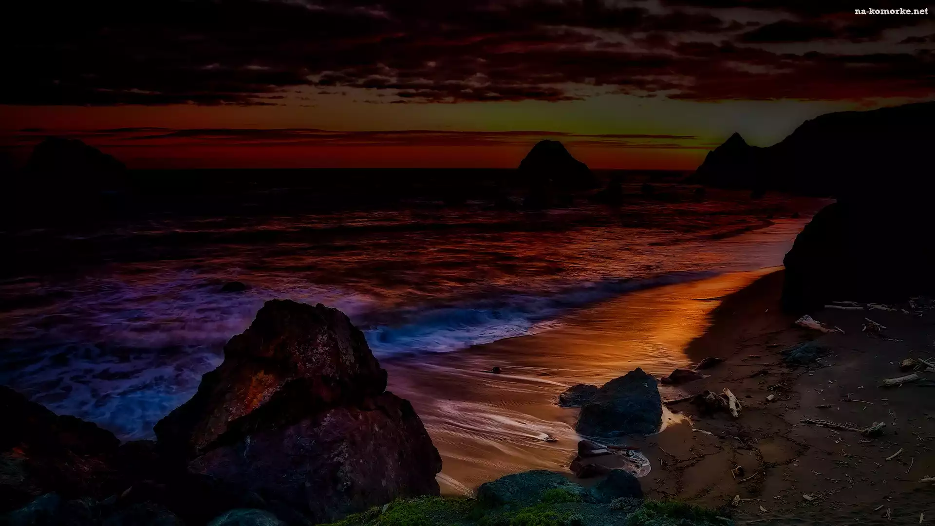Zachód, Ocean, Słońca, Skały na Komórkę