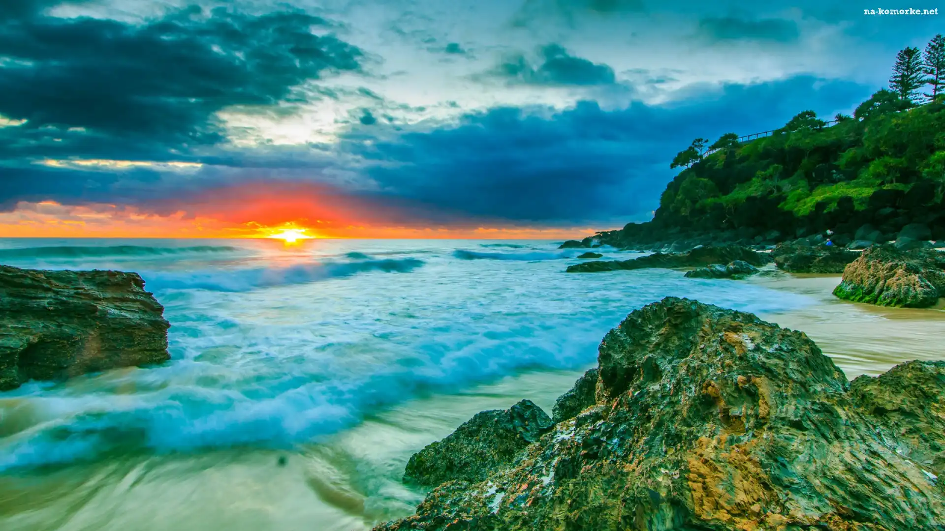 Zachód, Ocean, Słońca, Skały na Komórkę