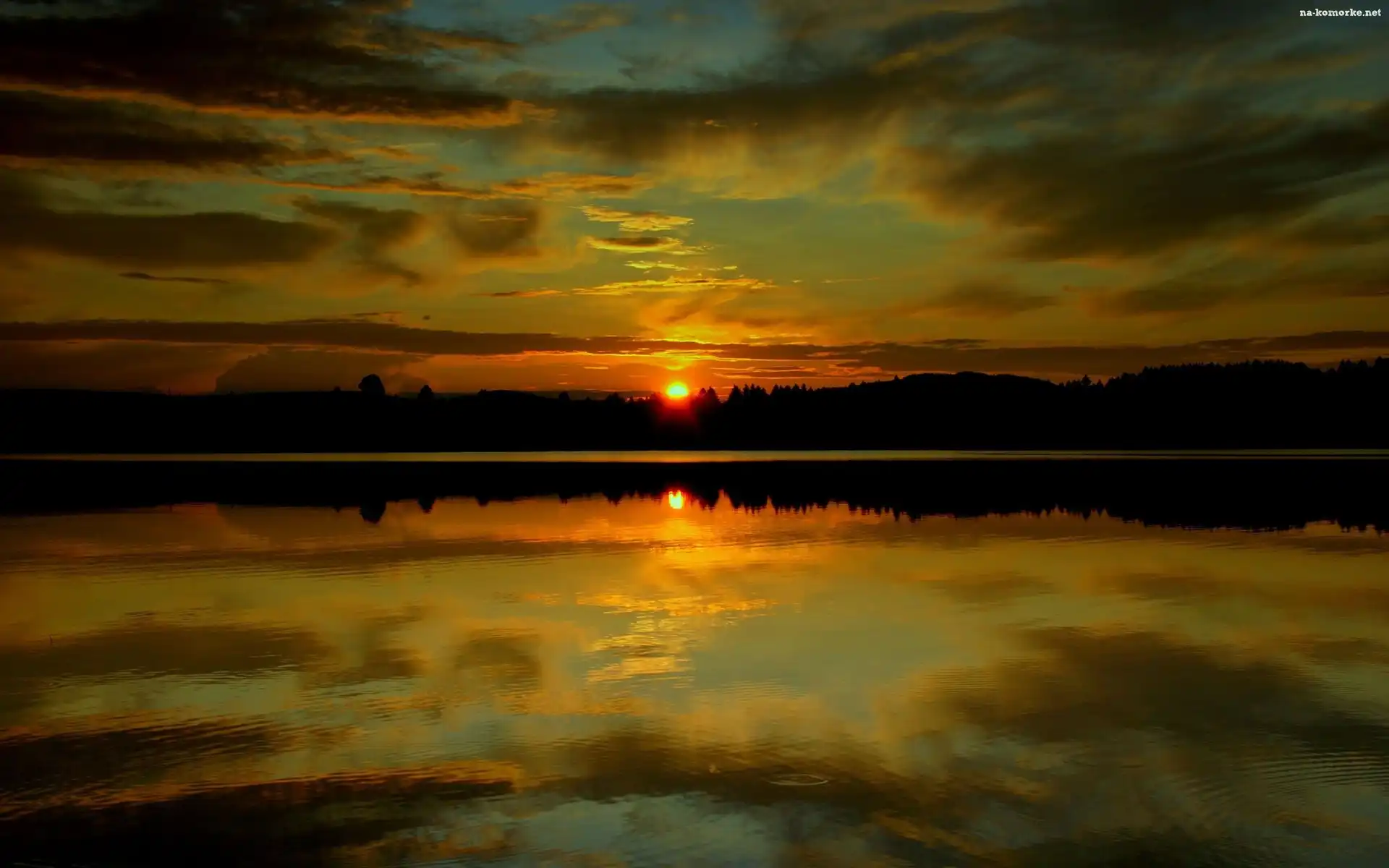 Zachód, Odbicie, słońca, Jezioro na Komórkę