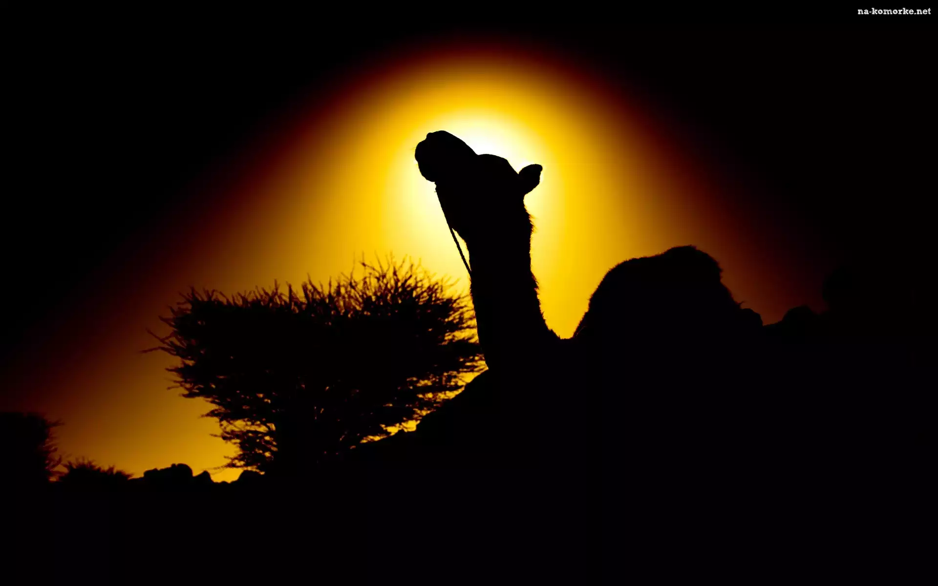 Zachód, Palma, Słońca, Wielbłąd na Komórkę