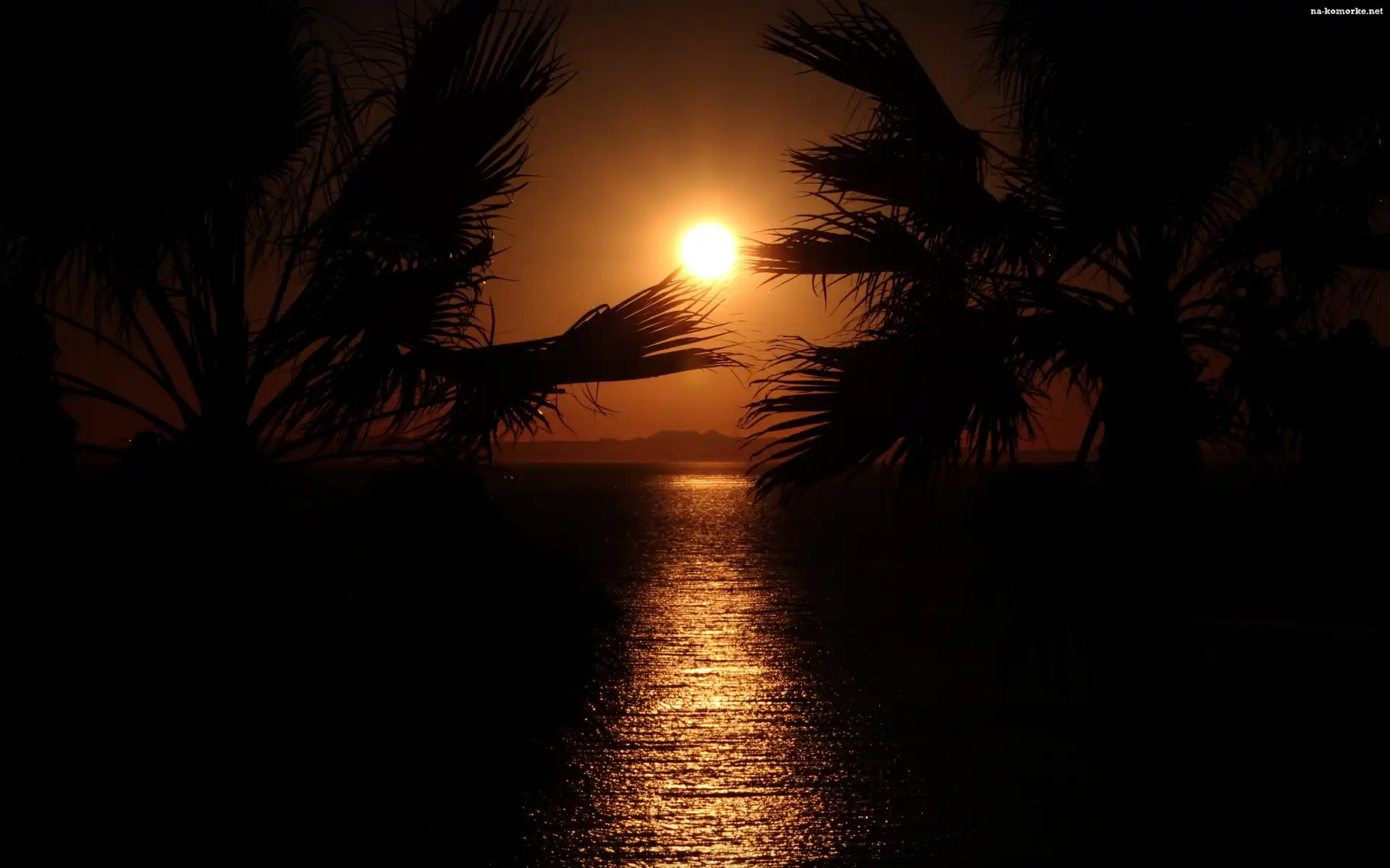 Zachód, Palmy, Słońca, Morze na Komórkę