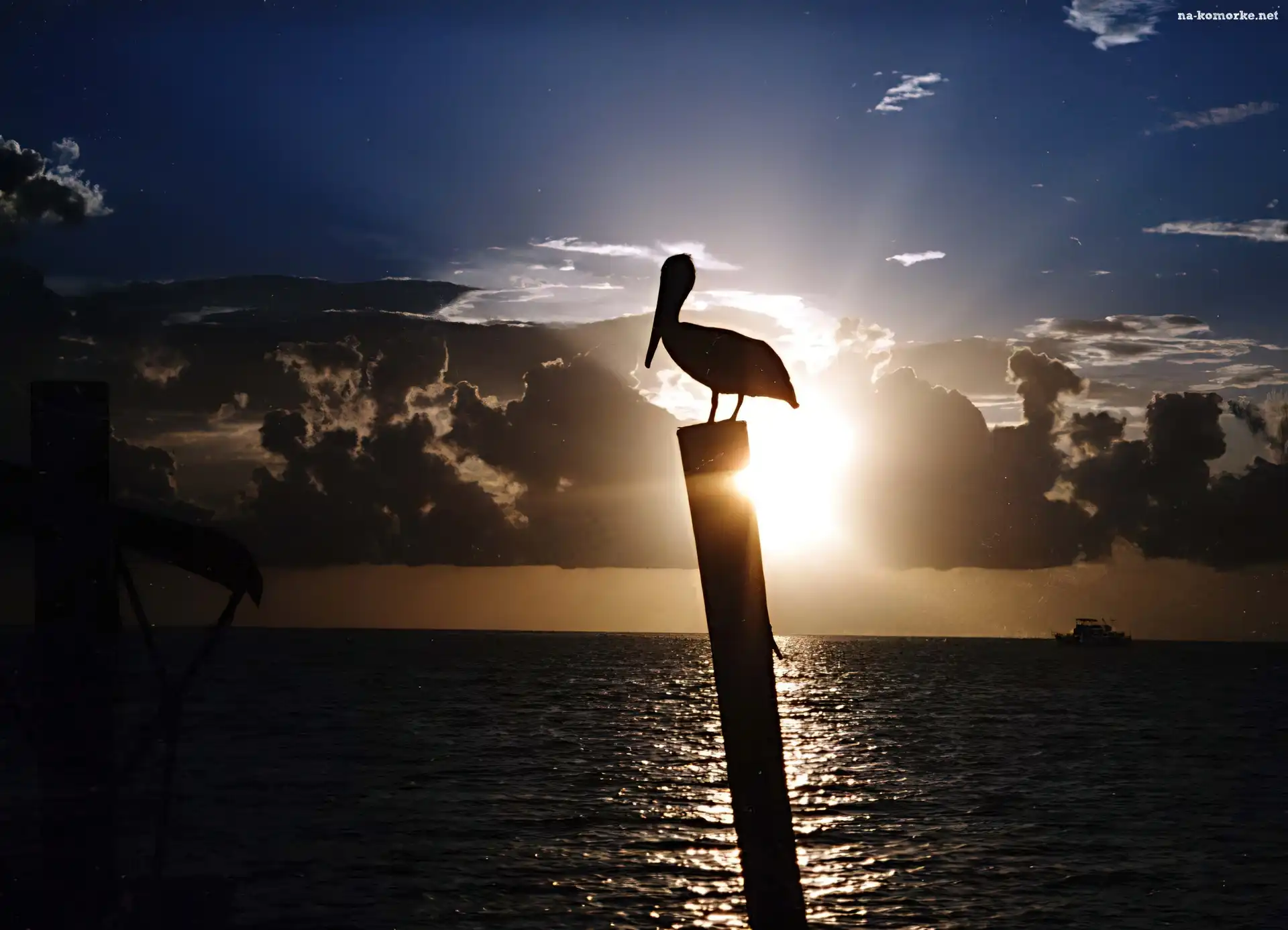 Zachód, Pelikan, Słońca, Morze na Komórkę