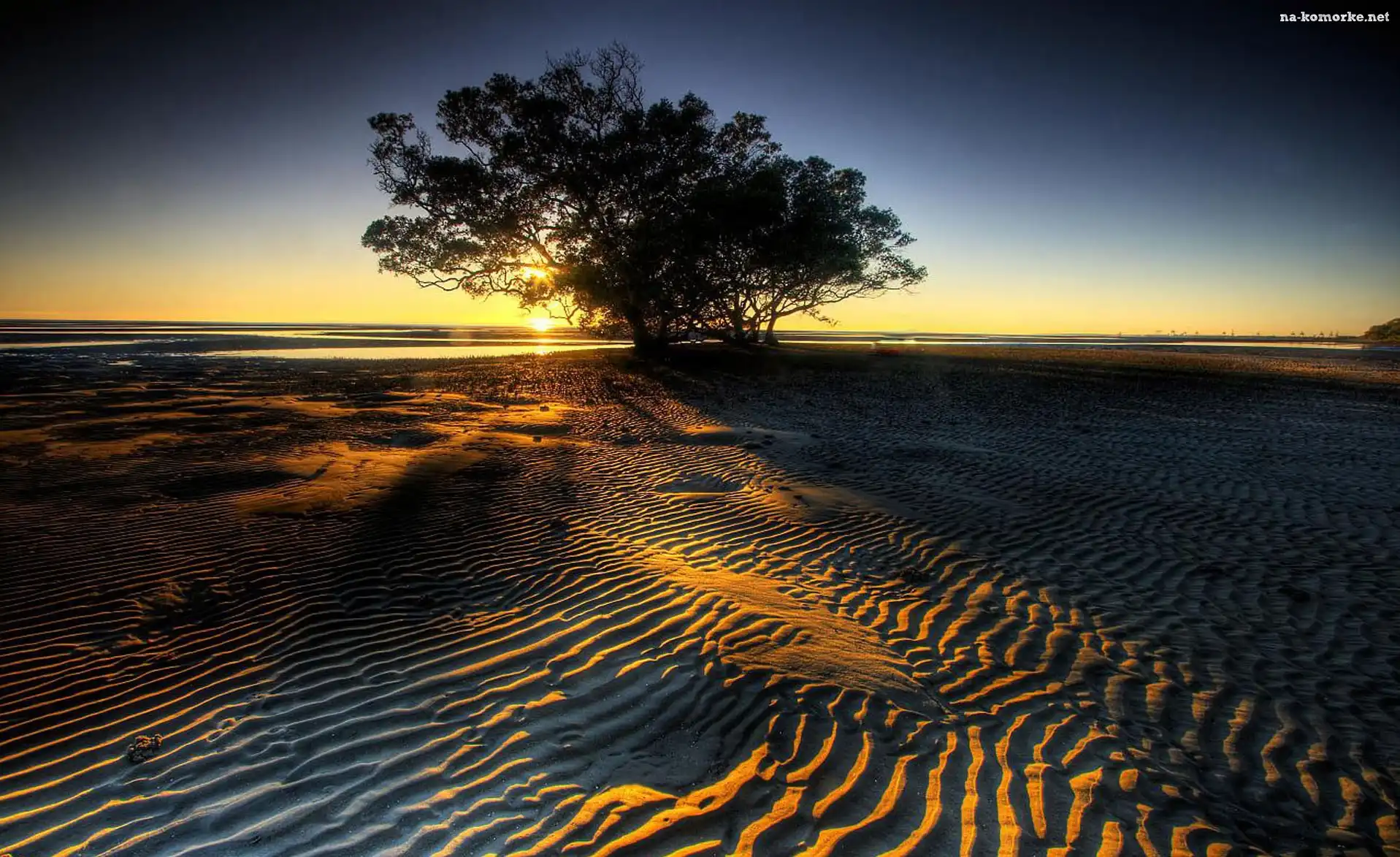 Zachód, Piasek, Słońca, Drzewo na Komórkę