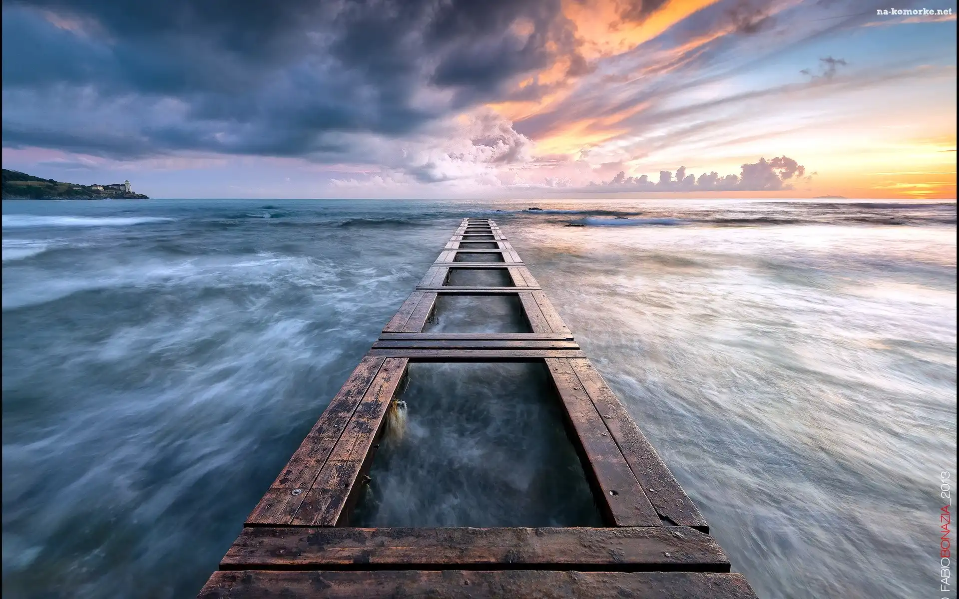 Zachód, Pomost, Słońca, Morze na Komórkę