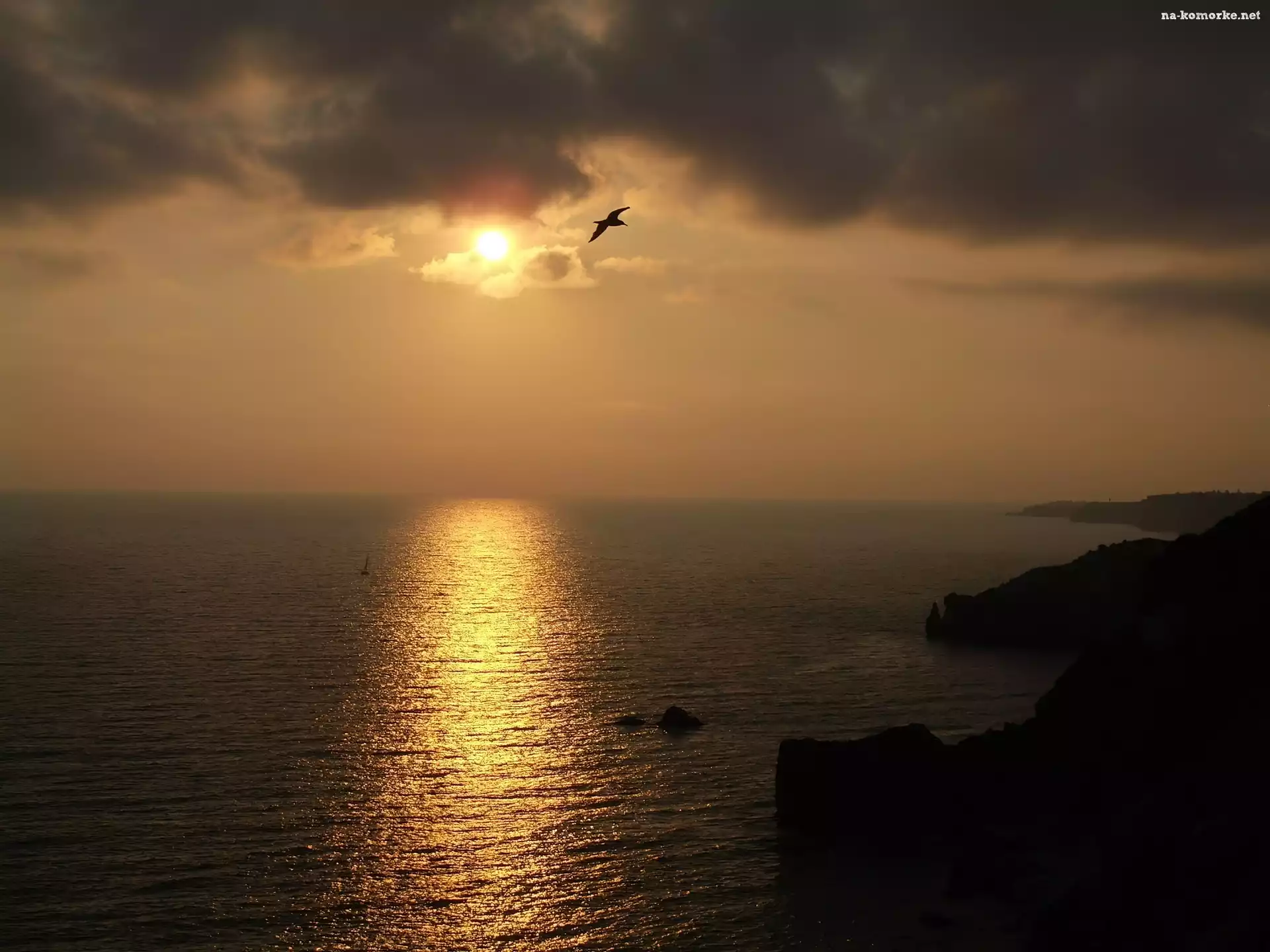 Zachód, Ptak, Słońca, Morze na Komórkę