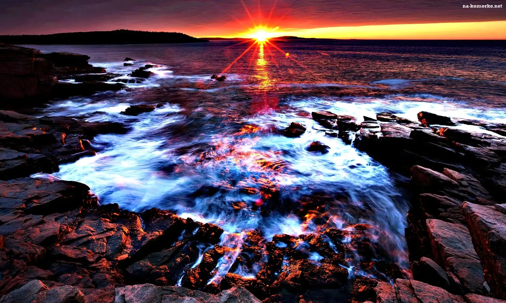 Zachód, Rzeka, Słońca, Skały na Komórkę