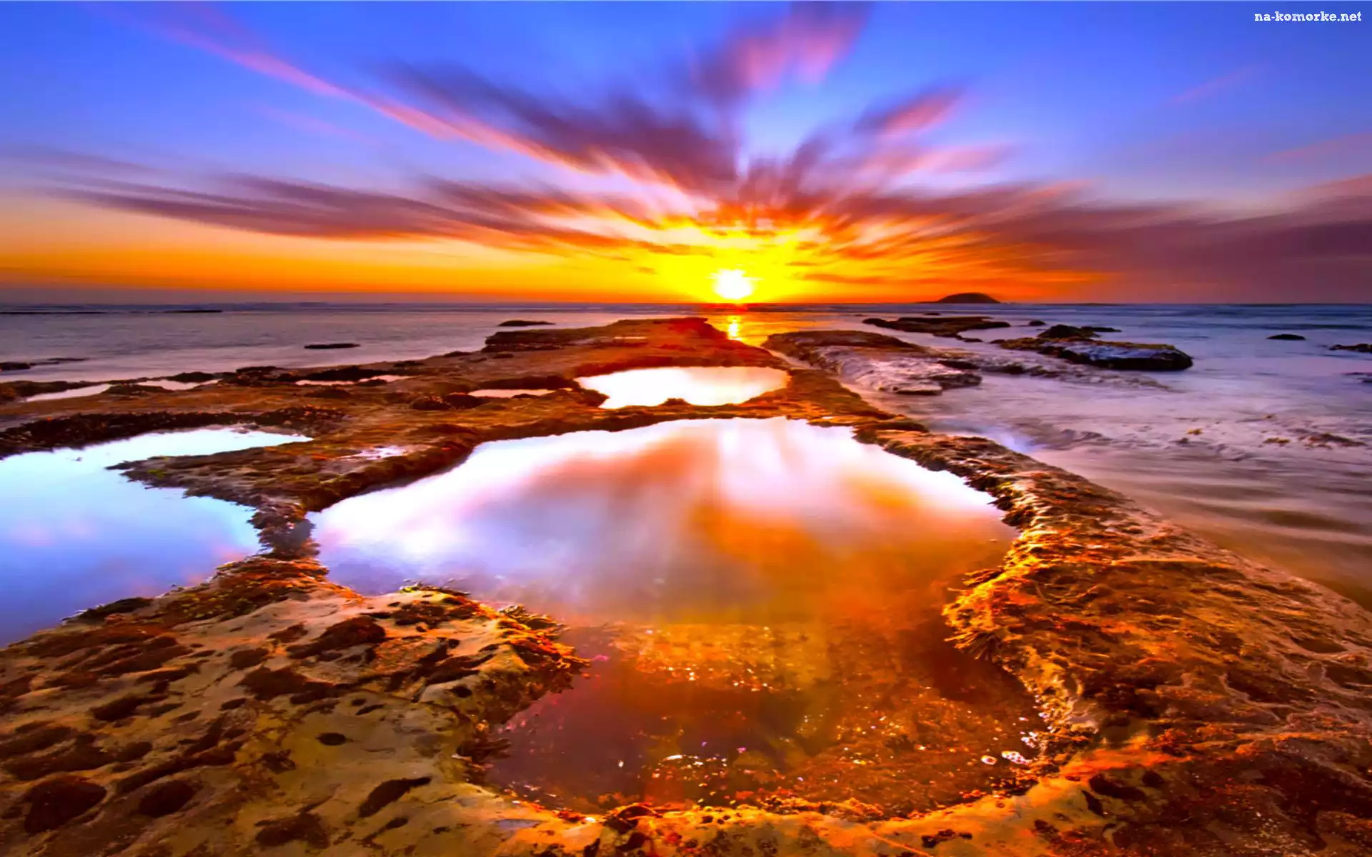 Zachód, Skałki, Słońca, Morze na Komórkę