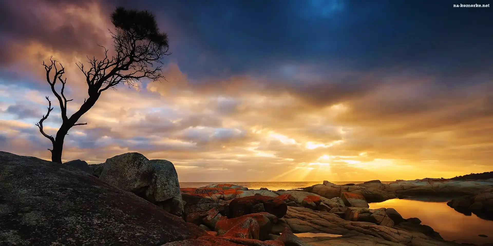 Zachód, Skały, Słońca, Drzewo na Komórkę