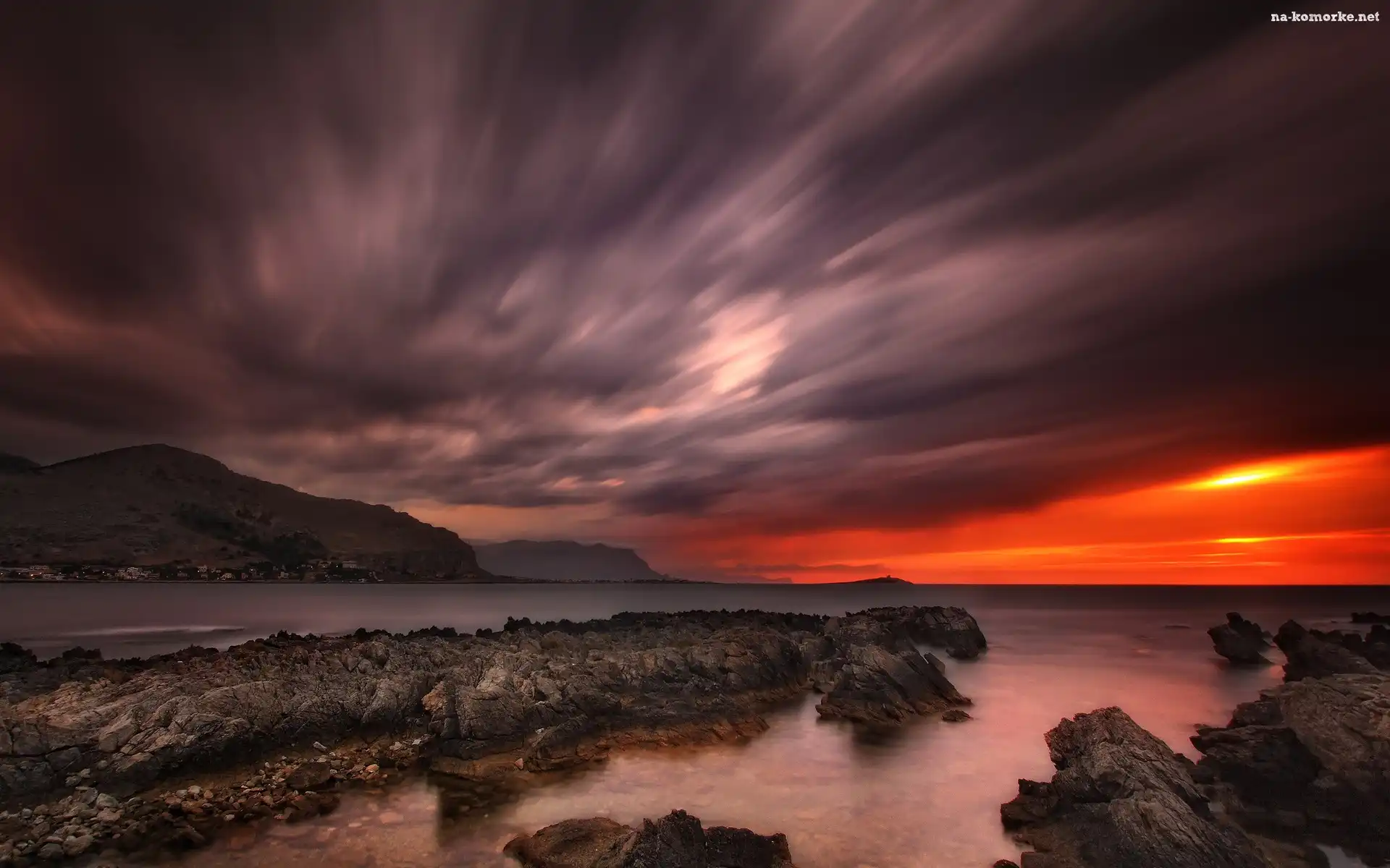 Zachód, Skały, Słońca, Morze na Komórkę