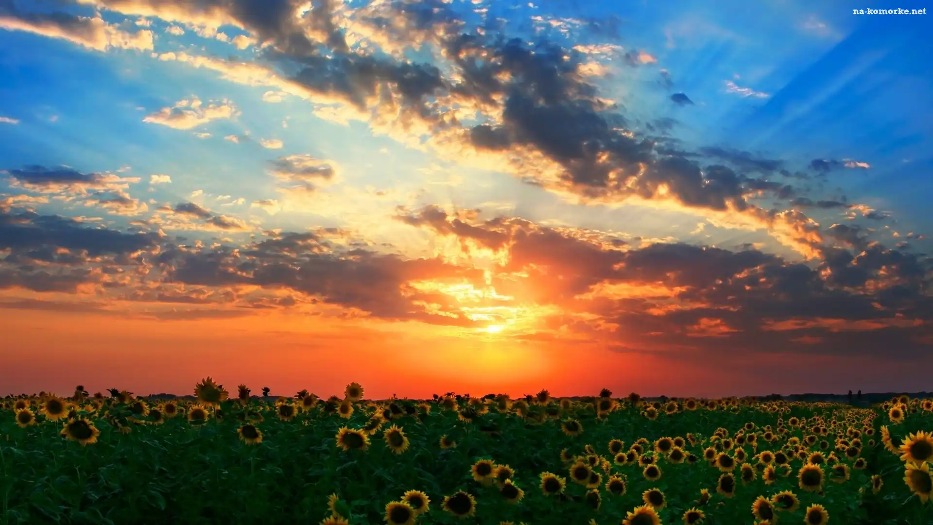 Zachód, Słoneczniki, Słońca, Niebo na Komórkę