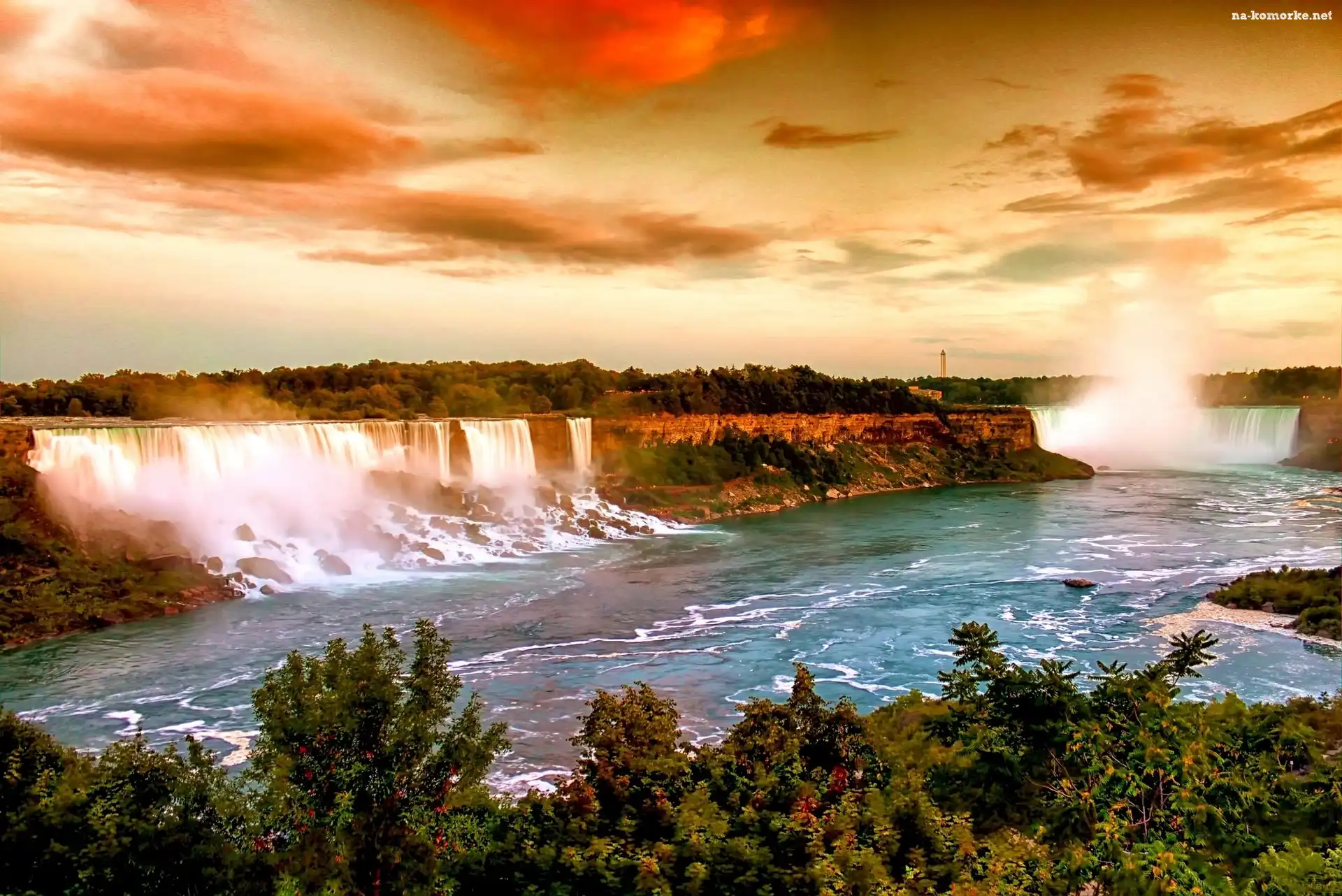 Wodospad, Zachód, Słońca na Komórkę