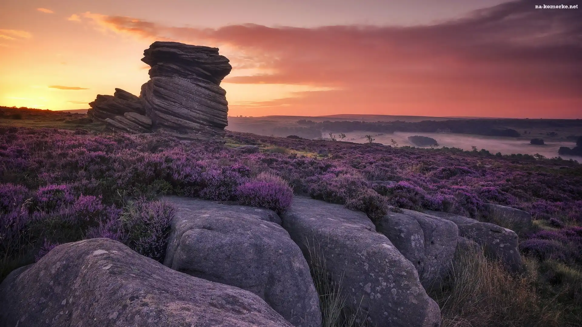 Zachód słońca, Kamienie, Skały, Wrzosowisko, Wrzos na Komórkę