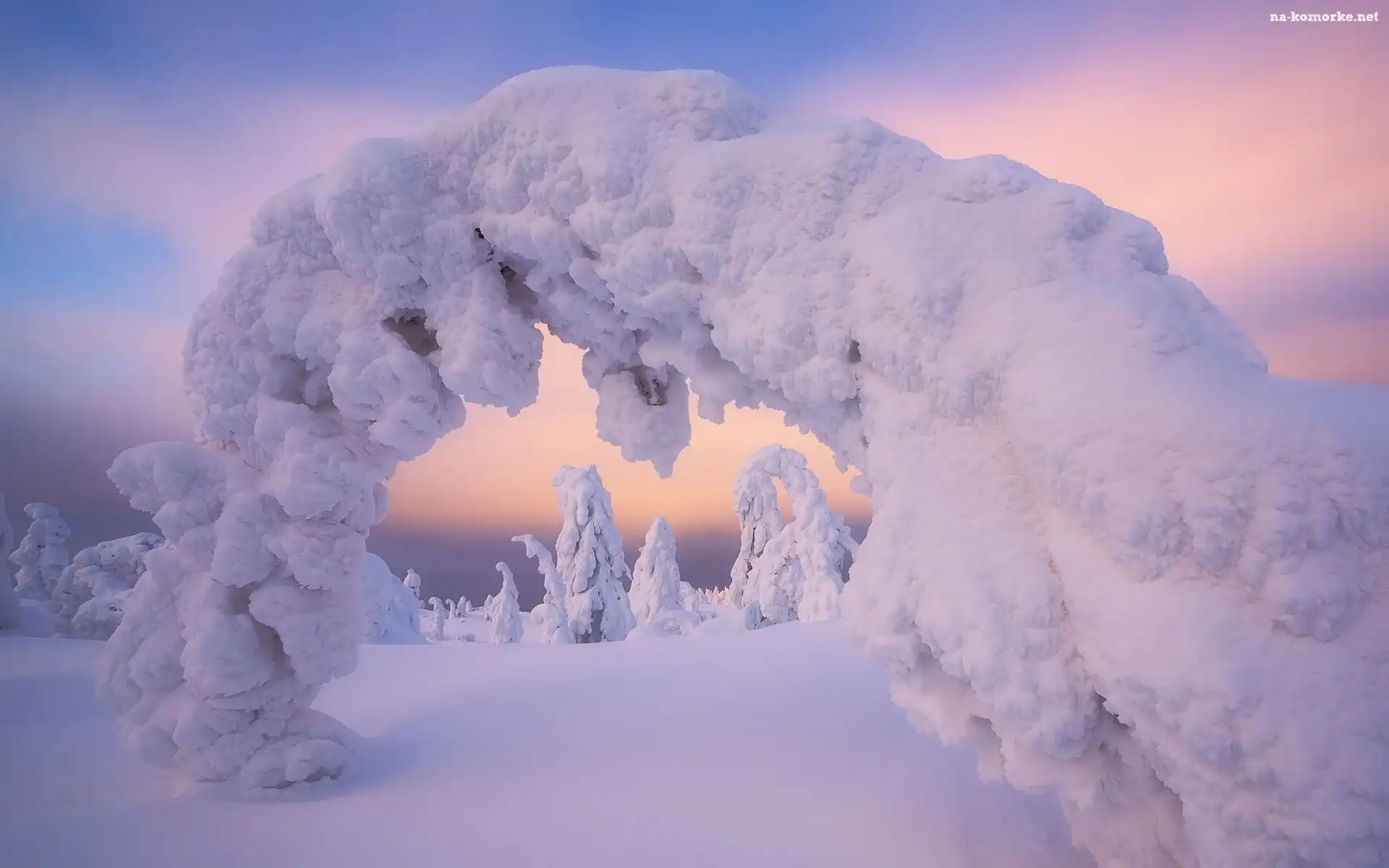 Zachód słońca, Śnieg, Zima, Zaśnieżone, Drzewa na Komórkę