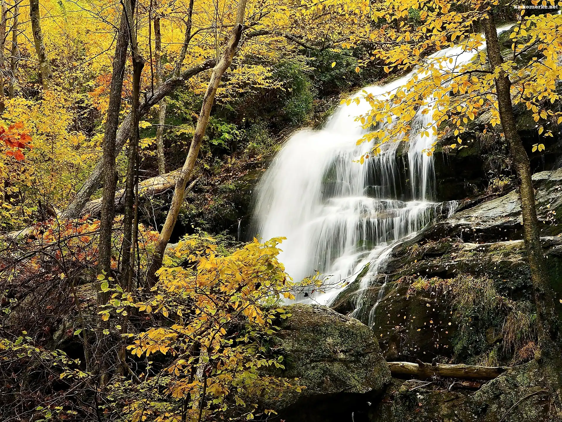 Góry, Jezioro, Las Jezioro, Góry, Las Jesienne, Liście Wodospad Japońskie, Pory, Roku Las, Jesień Przepiękny Wodospad, Drzewa Wodospad, Kaskadowy Wodospad Jesień, Liście, Ławka Wodospady, Tęcza Wodospad, Tęczy, Niagara, Kolory Zima, Las Złota, Droga, Jesień, Prosta