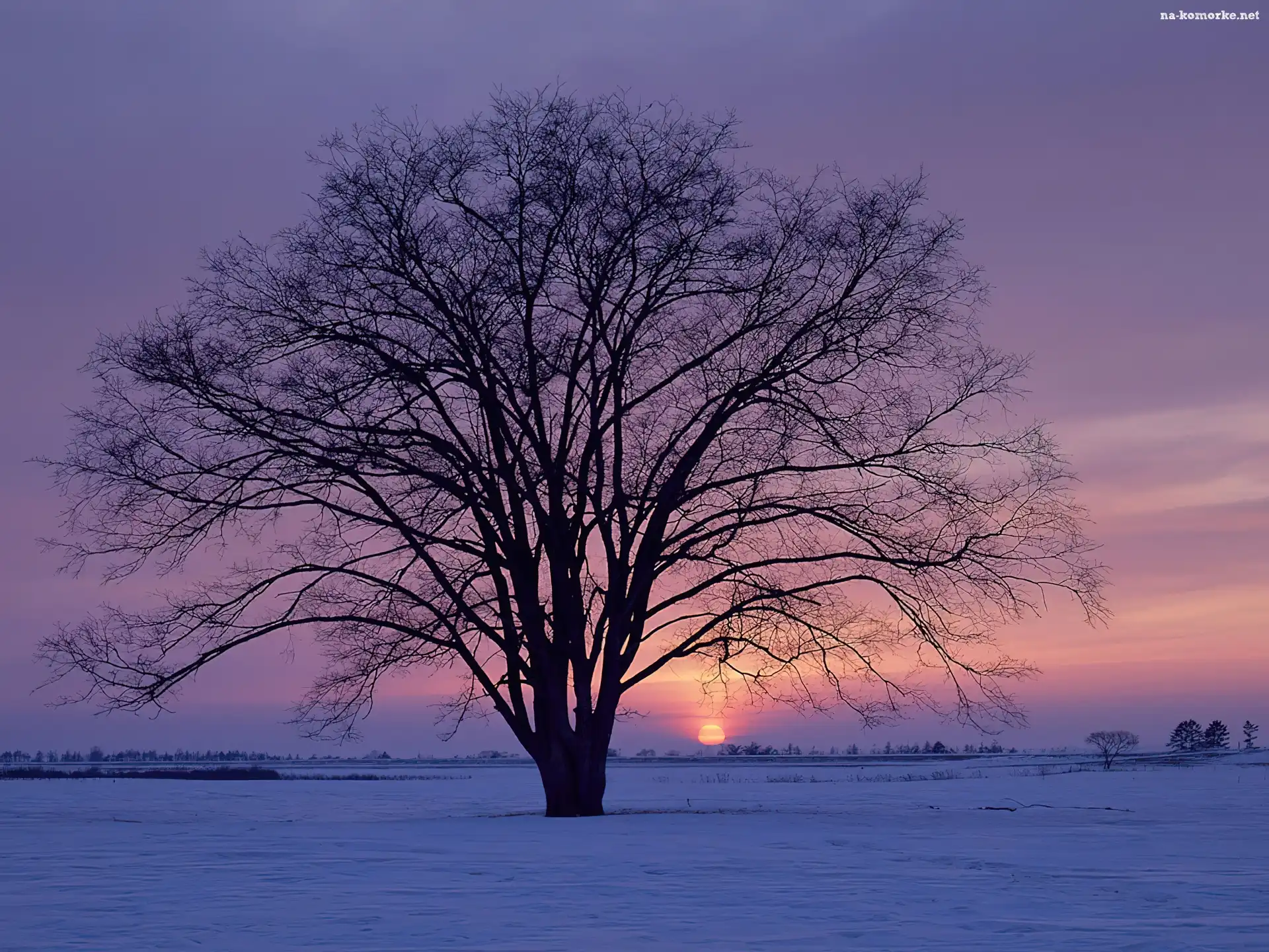 Zachodzące, Drzewo, Słońce, Samotne na Komórkę