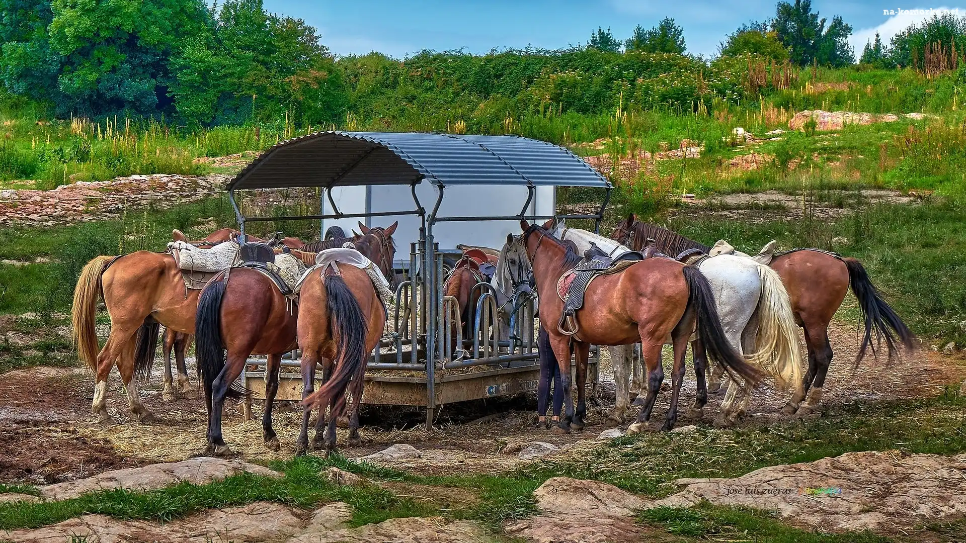 Drzewa, Rośliny, Konie, Zadaszenie na Komórkę