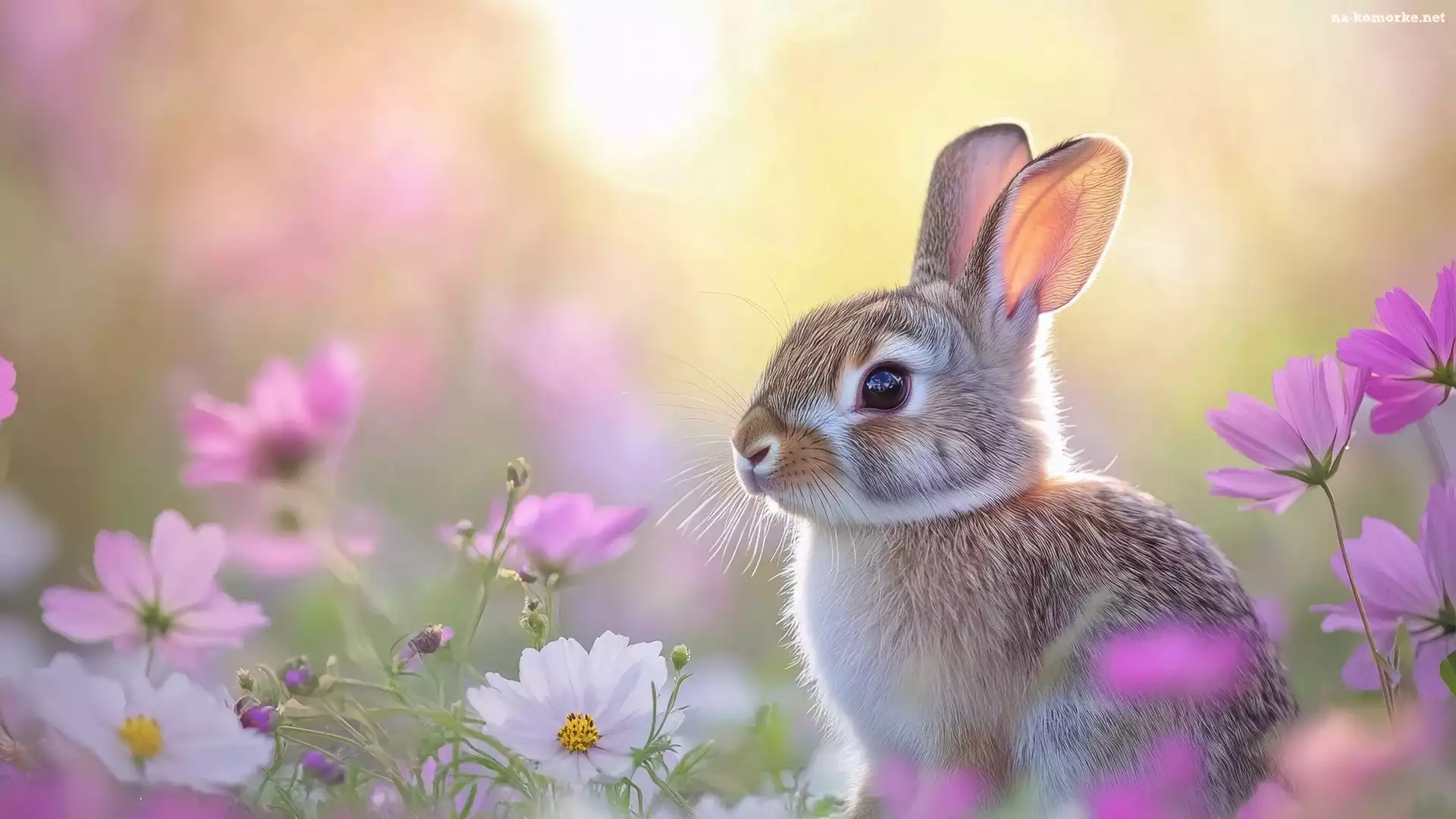 Kwiaty, Kosmea, Szary, Zając na Komórkę