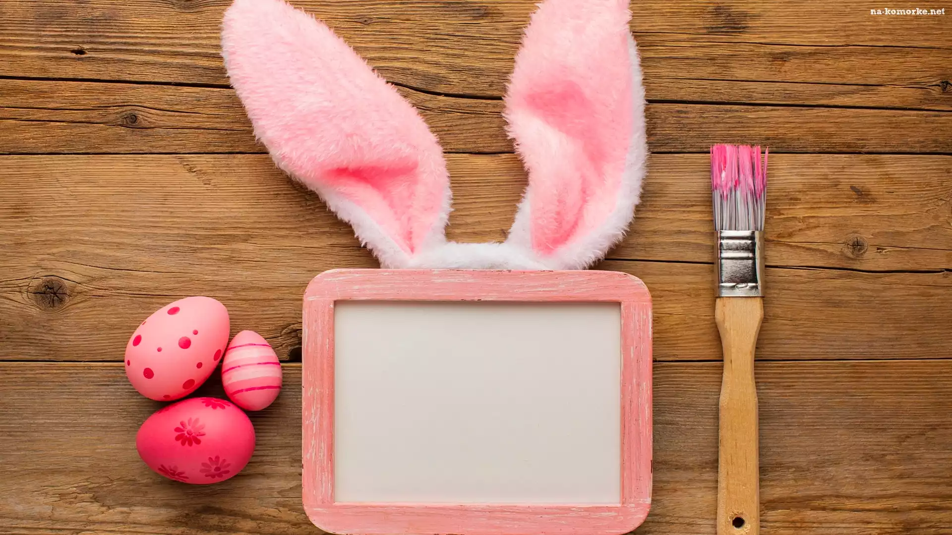 Różowe, Wielkanoc, Uszy, Pisanki, Deski, Kompozycja, Pędzel, Ramka, Zająca na Komórkę
