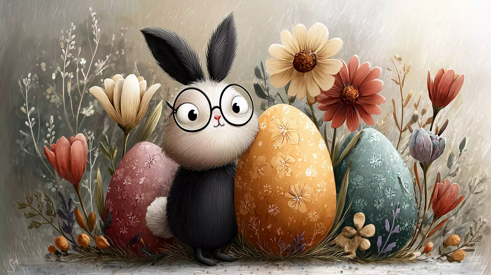 Wielkanoc, Pisanki, Kwiaty, Zajączek, Grafika AI na Komórkę