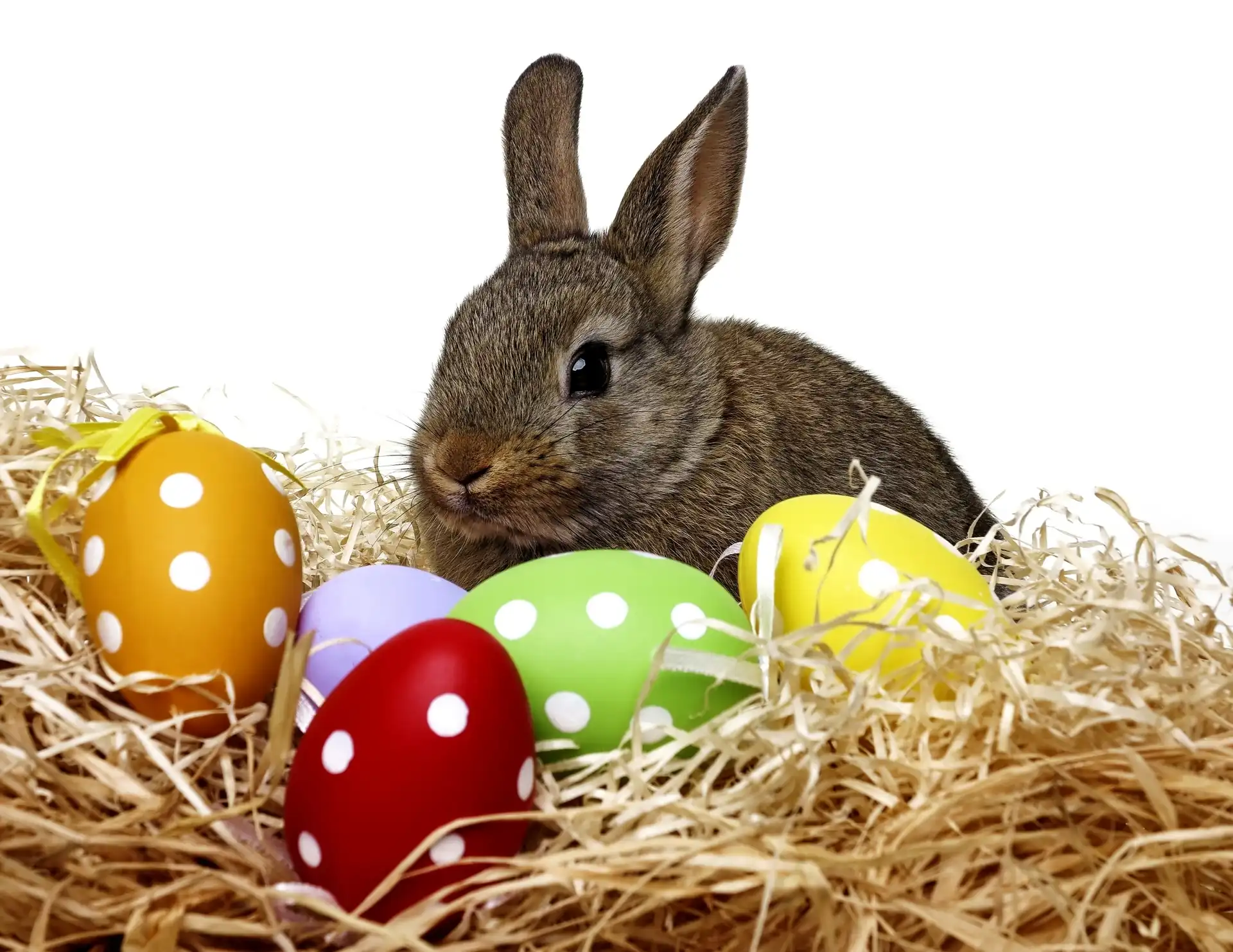 Zajączek, Wielkanoc, Jajka, Sianko na Komórkę