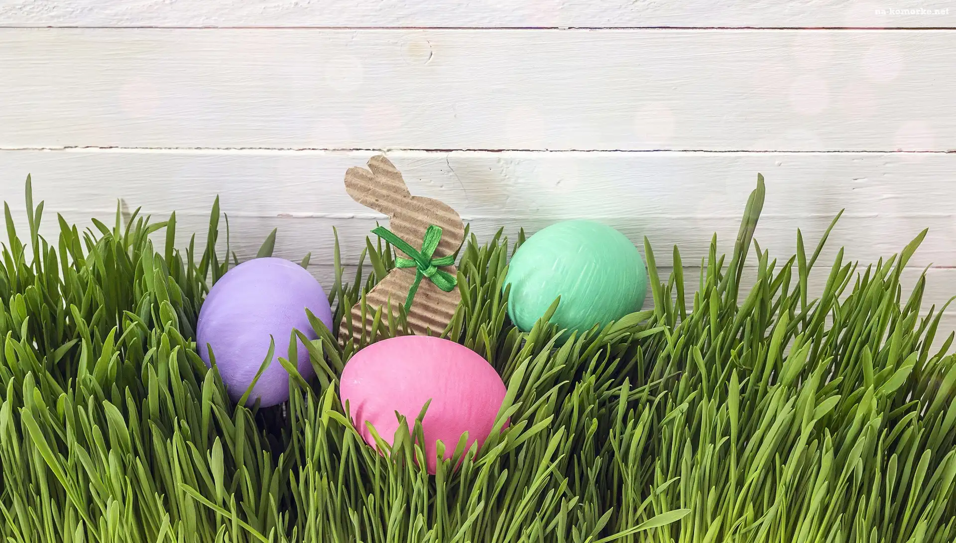 Zajączek, Wielkanoc, Trawa, Pisanki, Papierowy na Komórkę