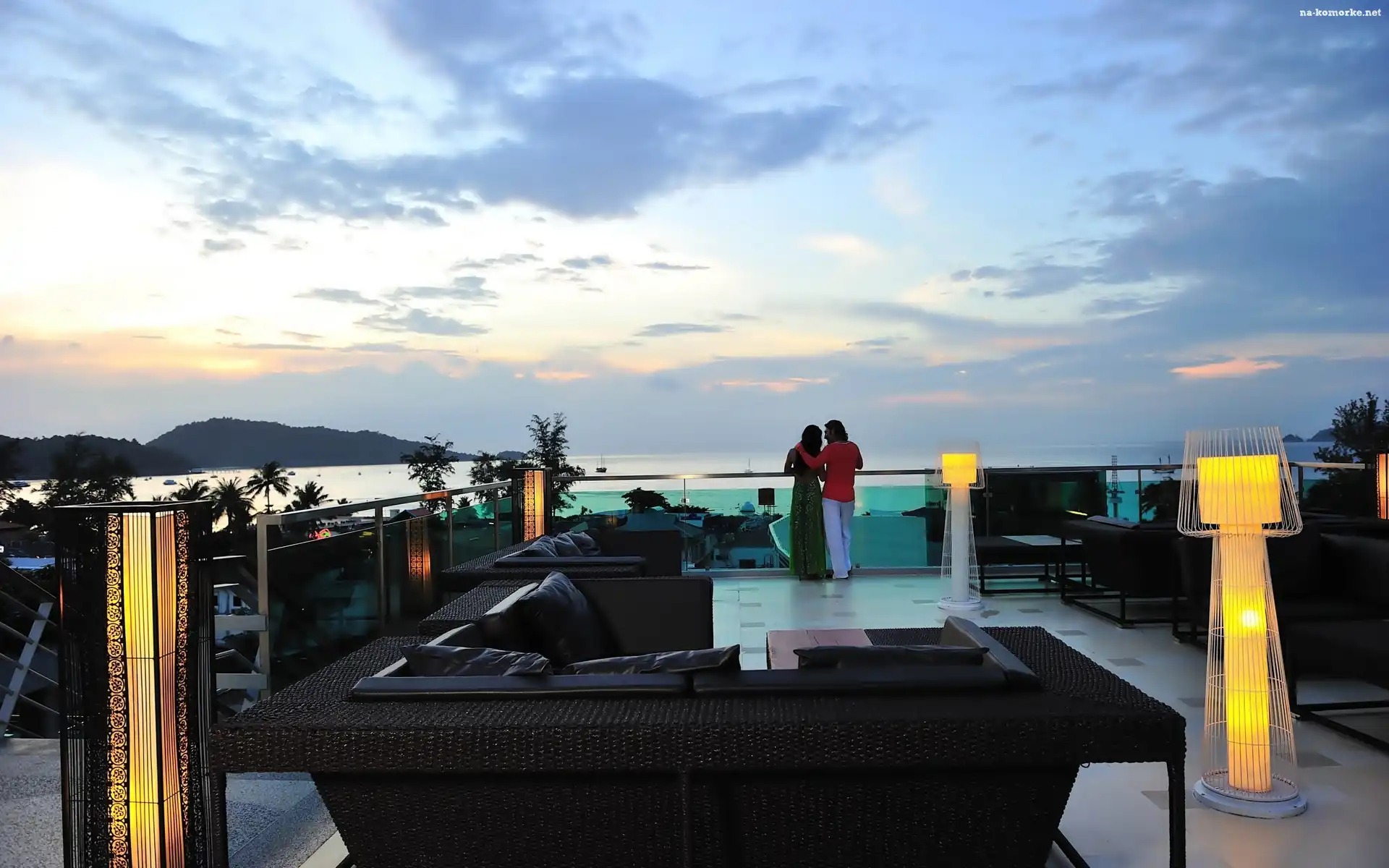 Hotel, Zakochana, Para, Taras, Widokowy, Góry, Morze na Komórkę