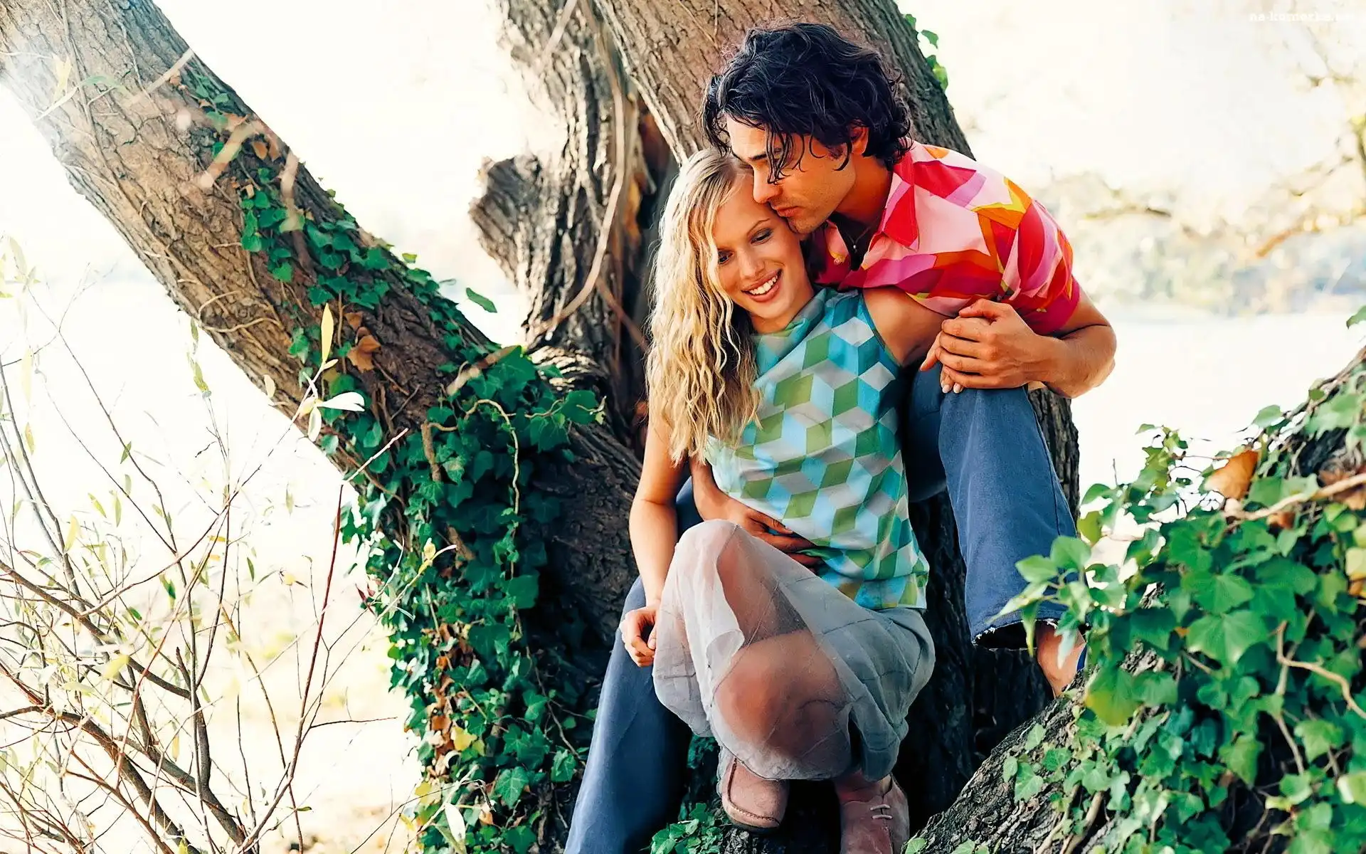 Zakochani, Dziewczyna, Para, Liście, Chłopiec, Drzewo na Komórkę