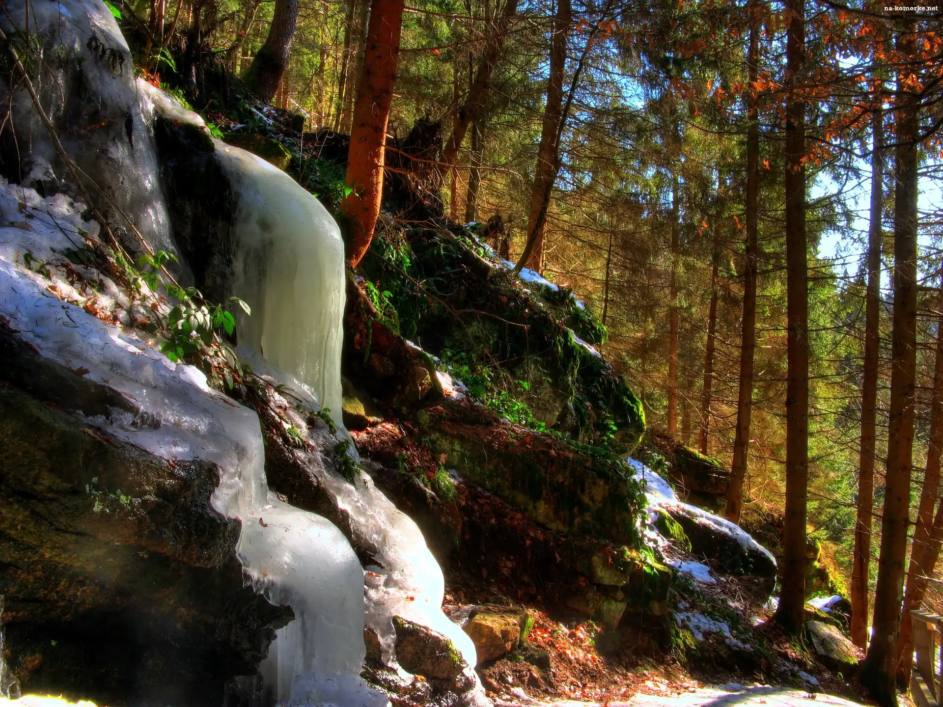 Las, Zamarznięty, Wodospad na Komórkę