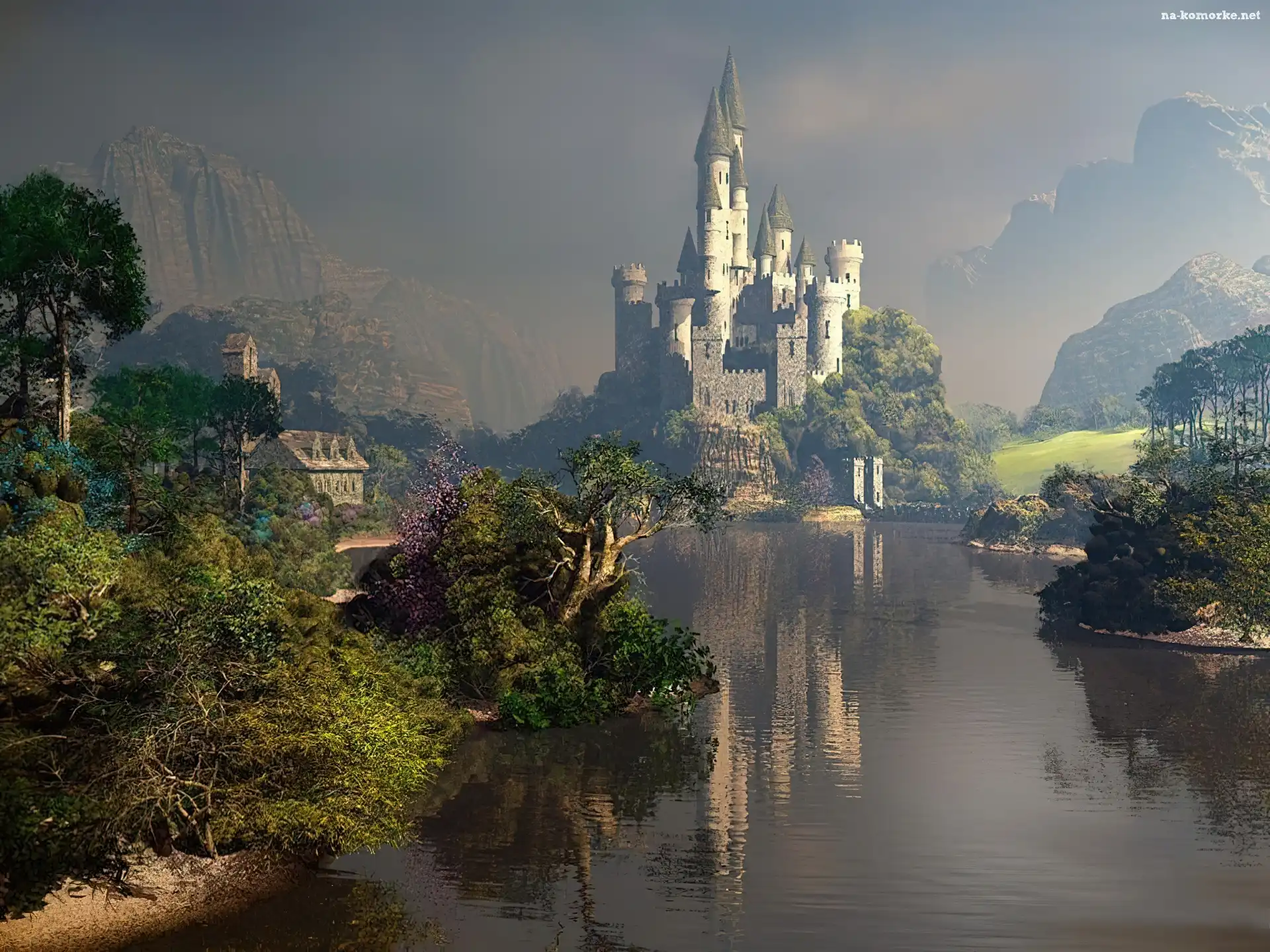Zamek, Krzaki, Góry, Woda na Komórkę