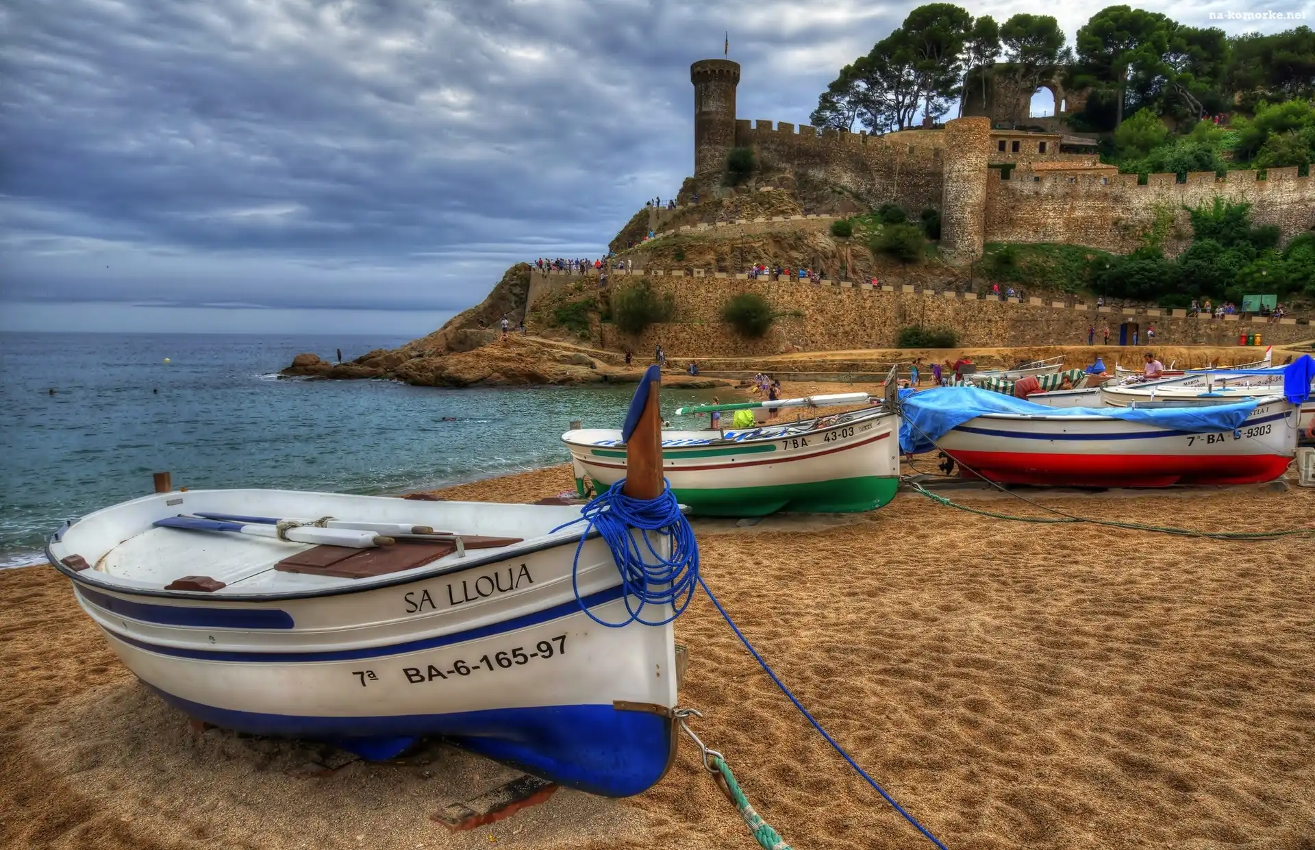 Tossa de Mar, Katalonia, Fortyfikacje, Costa Brava, Mury obronne, Morze, La Vila Vella, Hiszpania, Plaża, Łódki na Komórkę |