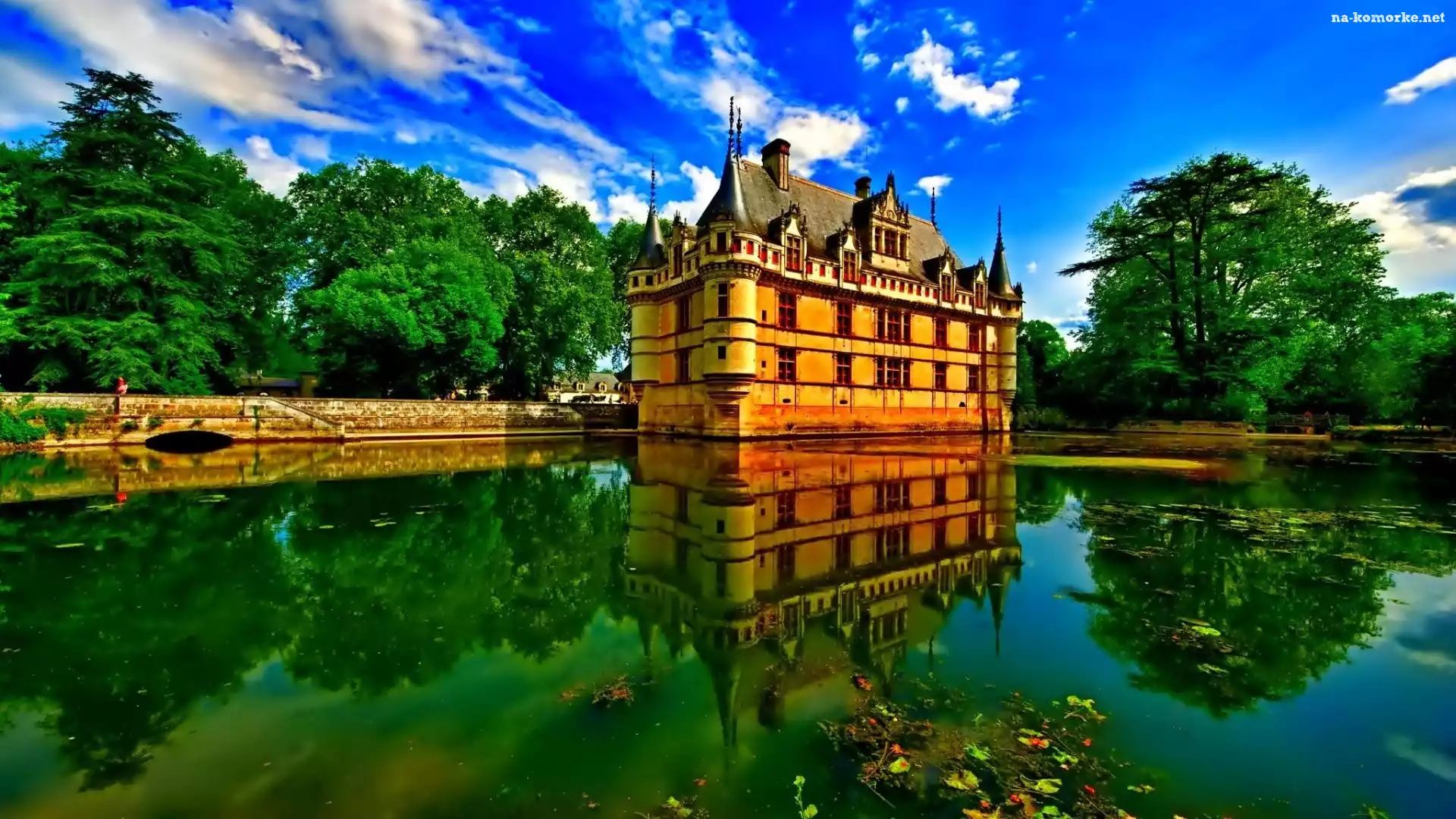Zamek w Azay le Rideau, Rzeka Indre, Azay, Francja na Komórkę