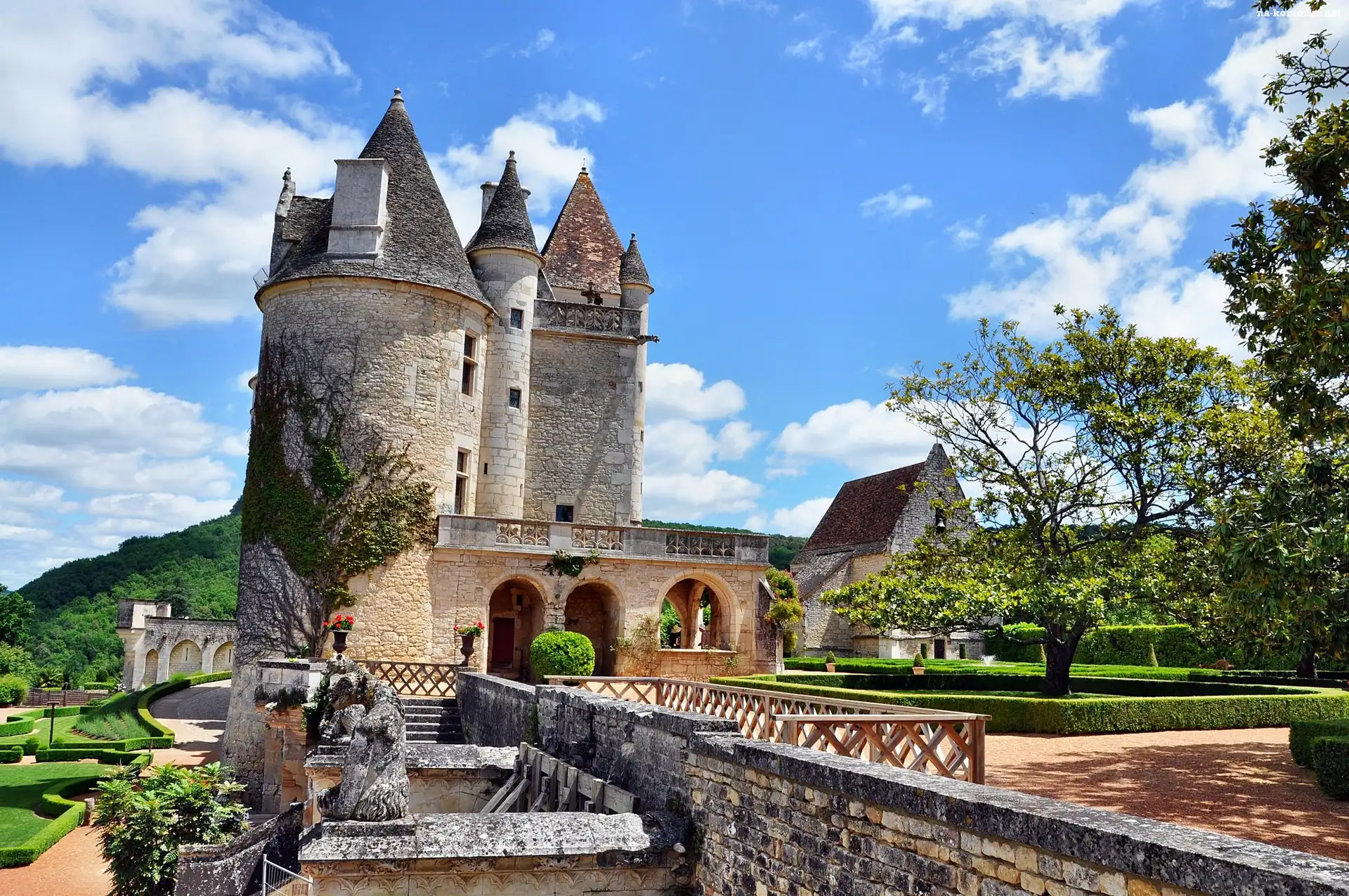 Zamek Chateau des Milandes, Francja, Miejscowość Castelnaud-la-Chapelle, Dordonia na Komórkę