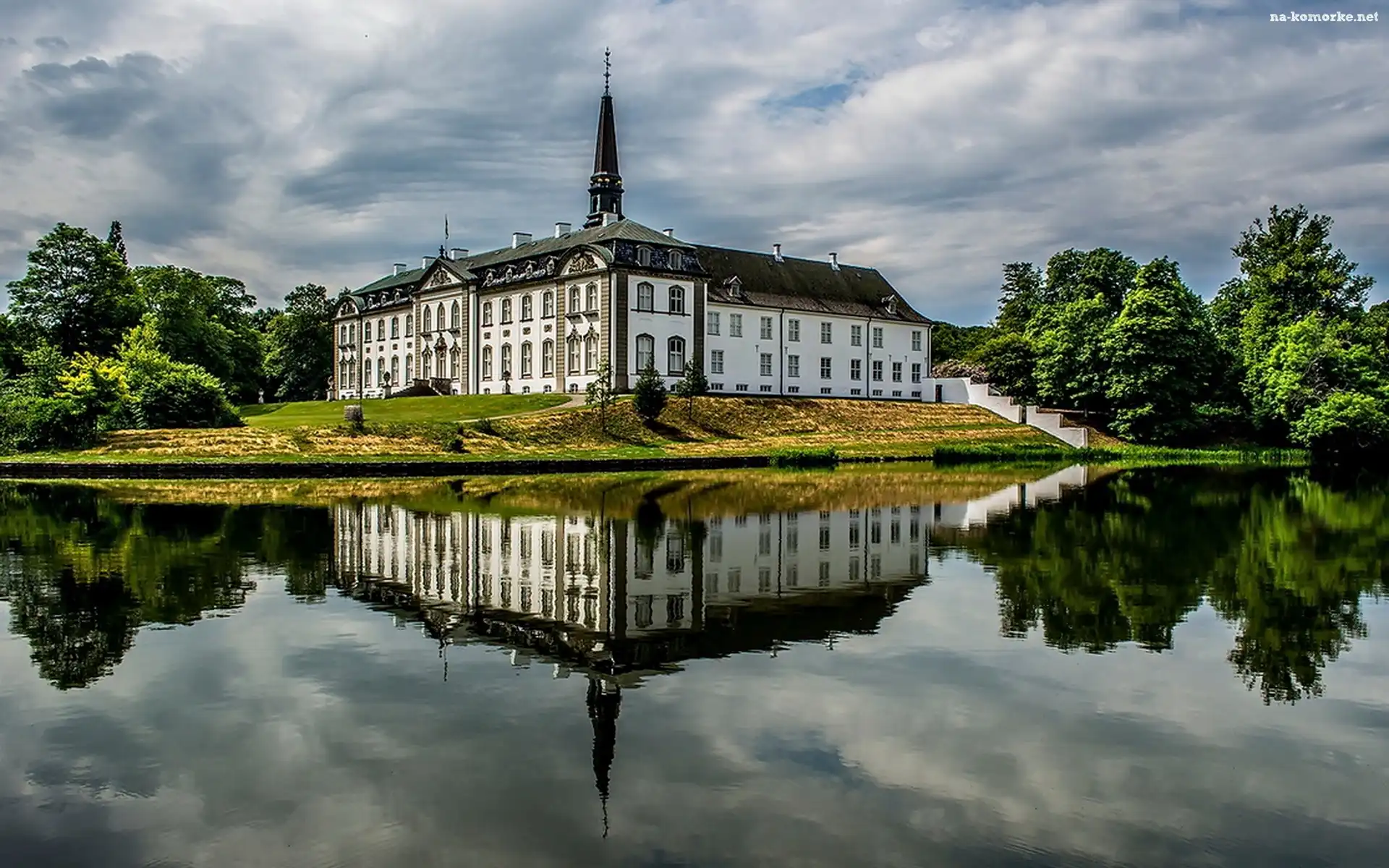 Zamek, Jezioro, Drzewa, Niebo, Odbicie na Komórkę