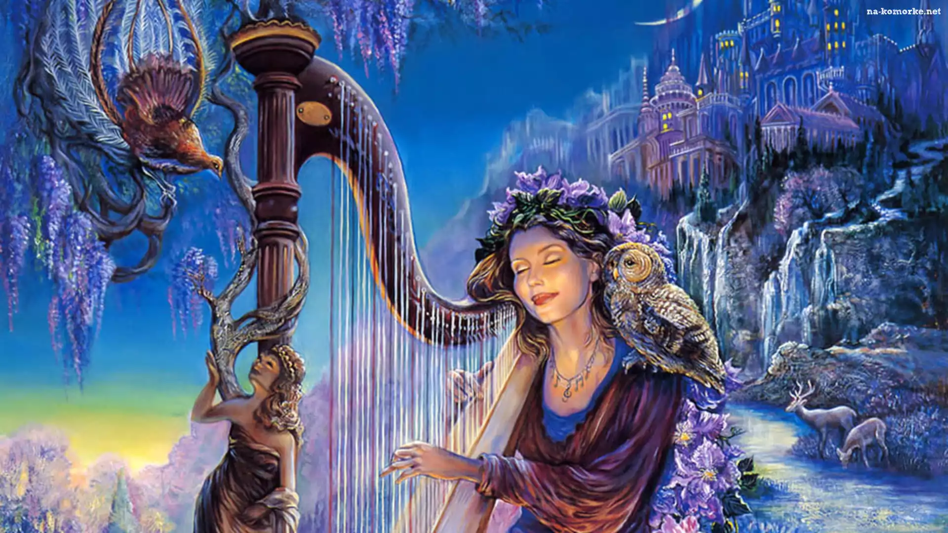 Zamek, Kobieta, Harfa, Sowa, Góry na Komórkę