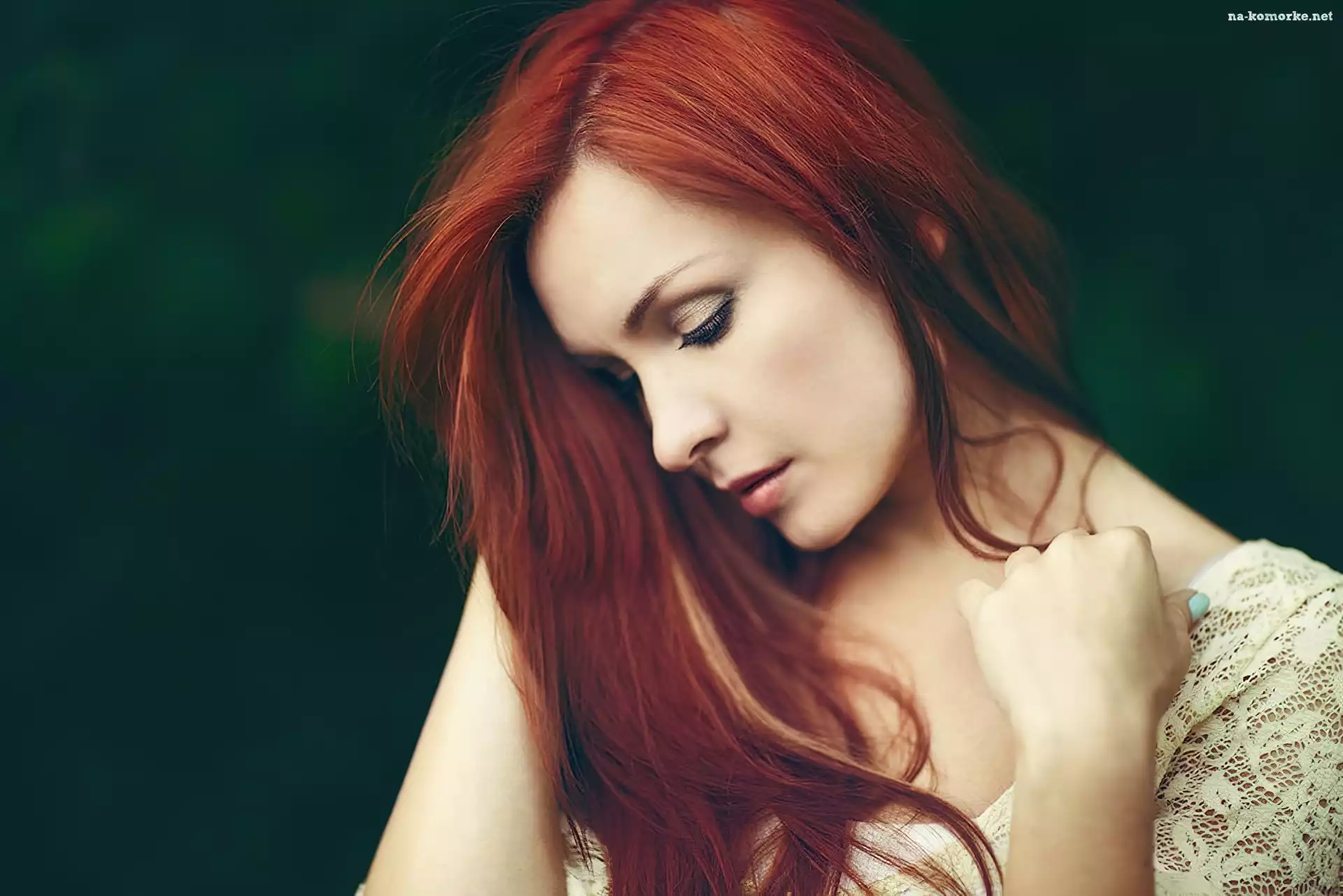 Zamyślona, Włosy, Kobieta, Rude na Komórkę