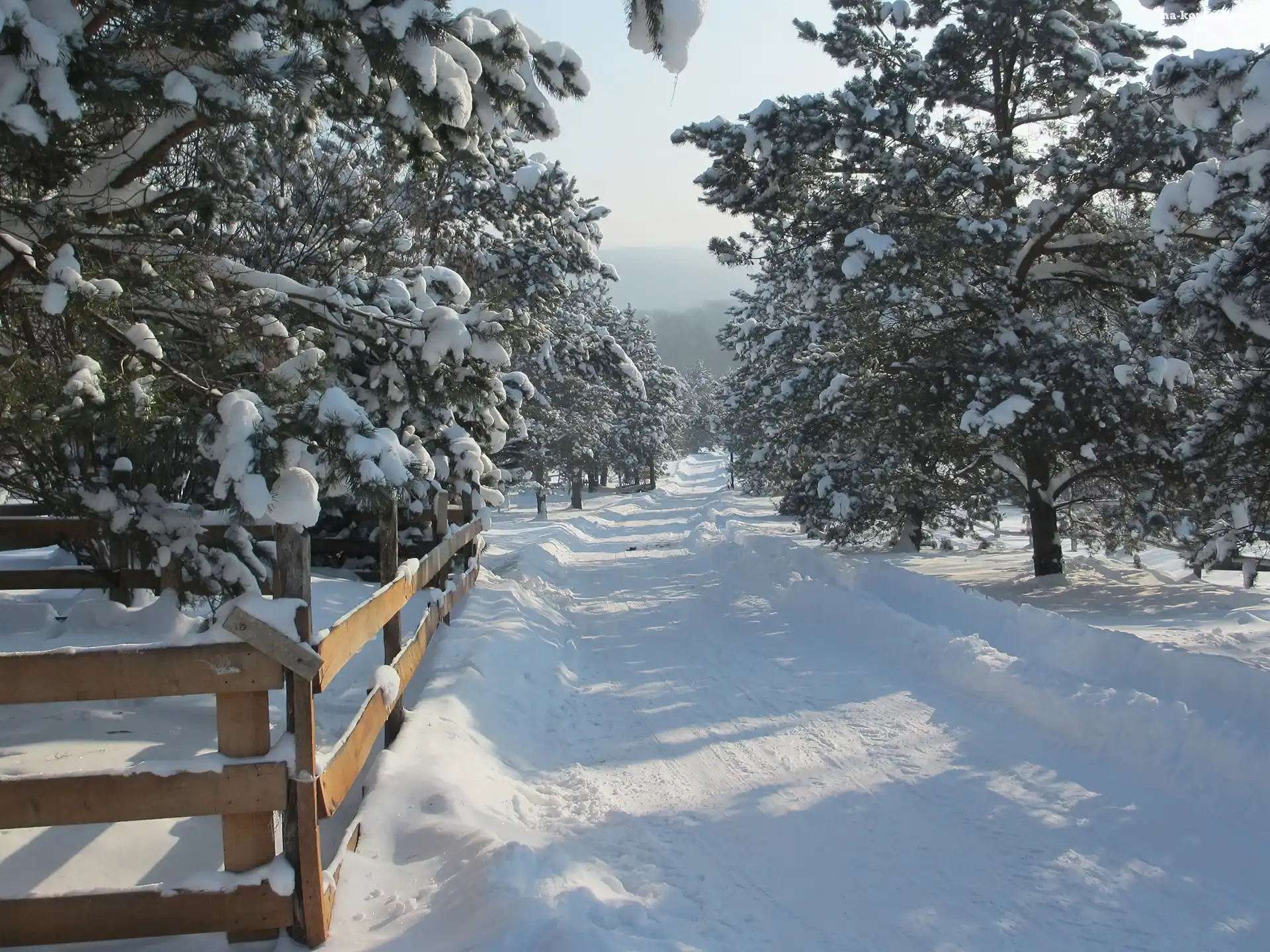 Zaspy, Zima, Drzewa, Ogrodzenie, Droga na Komórkę